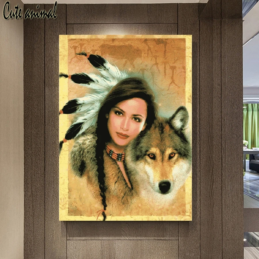 5D DIY полная дрель квадратная круглая алмазная живопись индийские красавица и волк Алмазная вышивка Стразы украшения Картины Мозаика