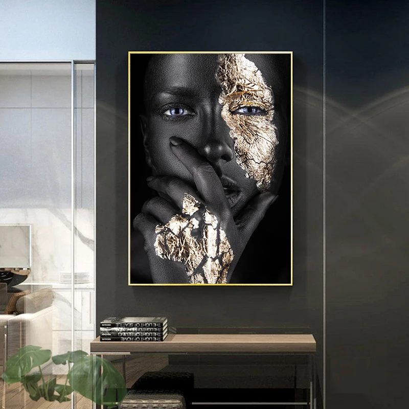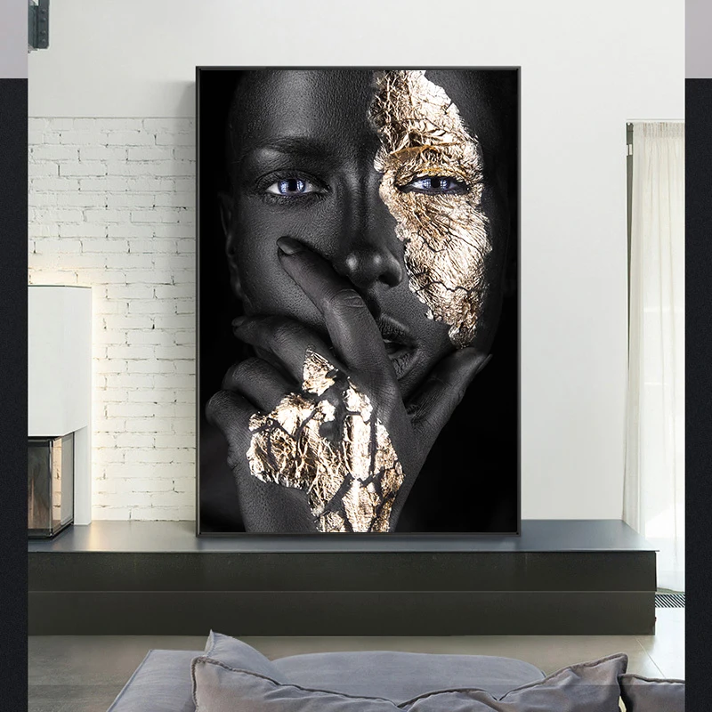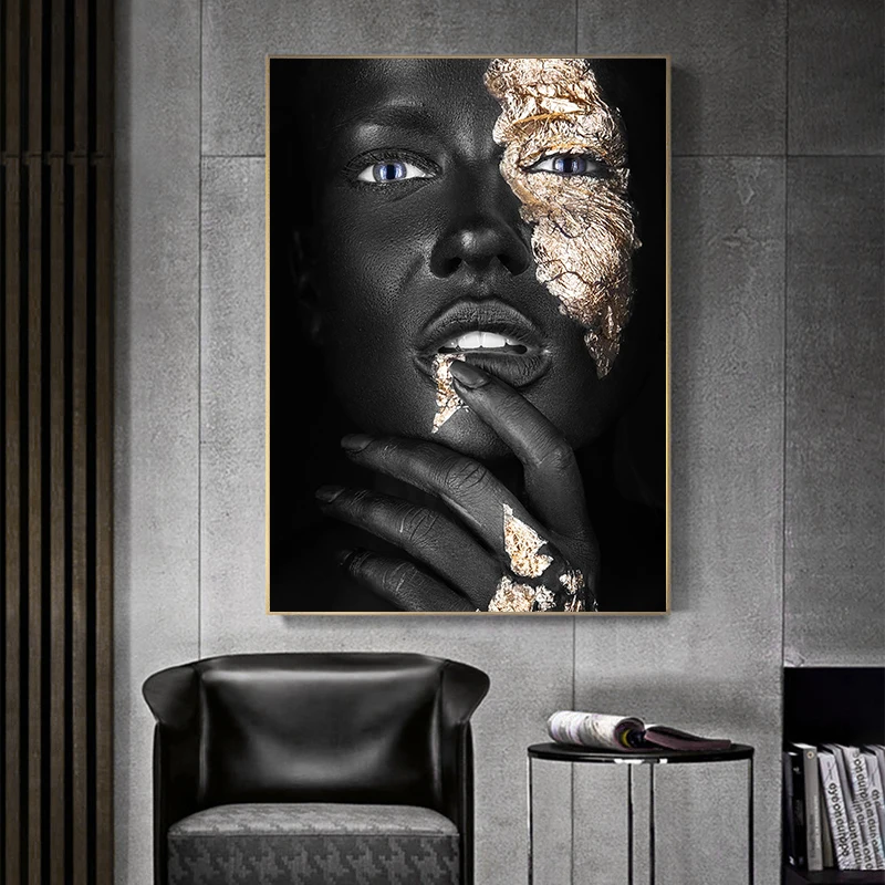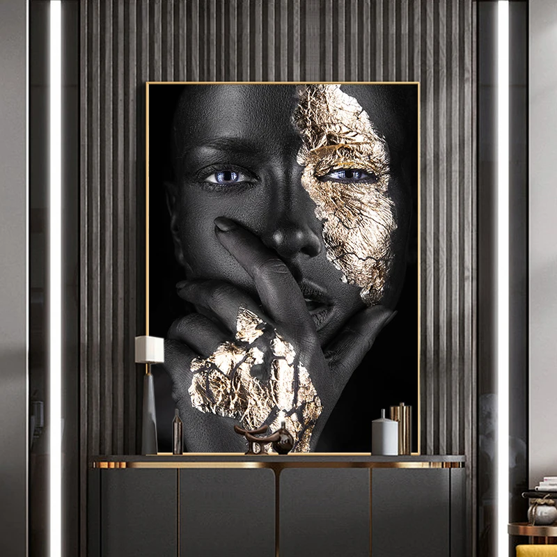 Плакат Африканской женщины, Черное золото, Абстрактная Картина на холсте, современный настенный художественный принт, декоративная картина для гостиной, украшение для дома