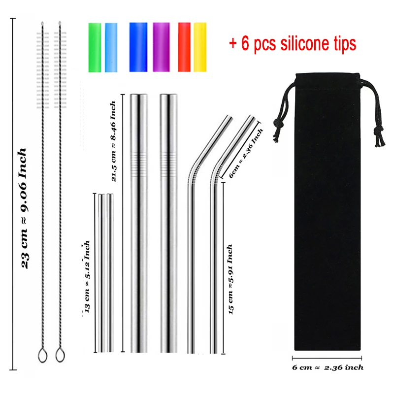 Многоразовые металлические соломинки из нержавеющей стали 304, прямые изогнутые соломинки, портативный набор соломинок с сумкой-кисточкой, аксессуары для бара