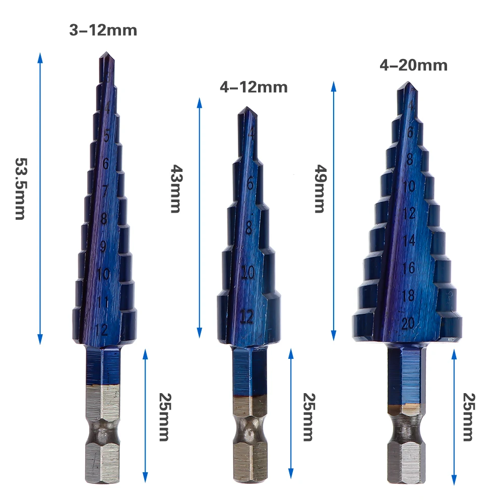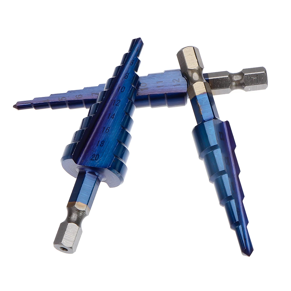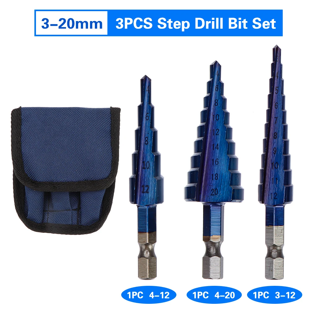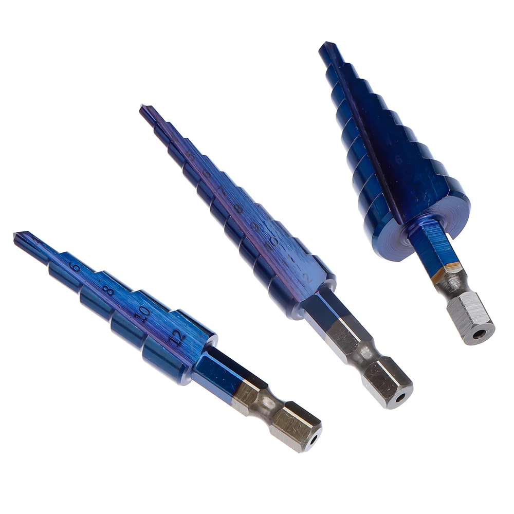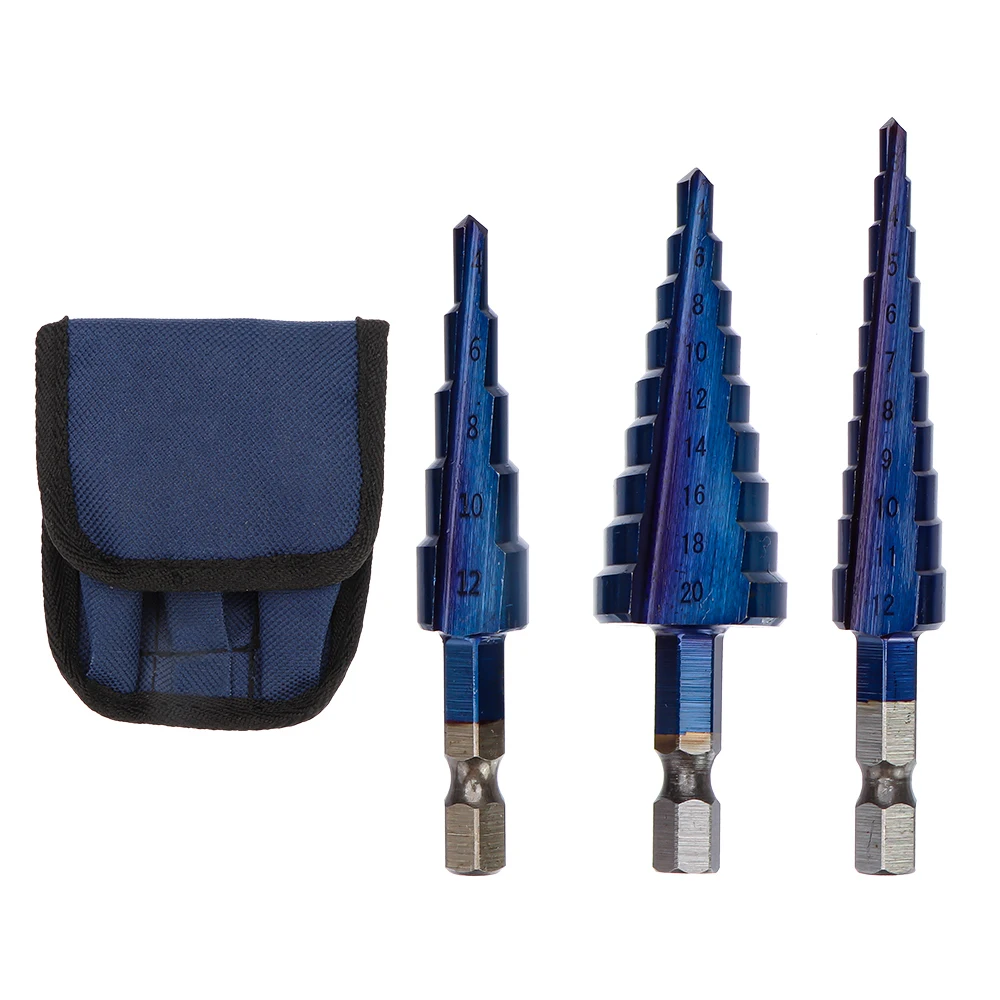 3 шт. ступенчатые сверла HSS 3-12 мм 4-12 мм 4-20 мм нано-синие сверла с покрытием набор металлических сверл деревообрабатывающие электроинструменты