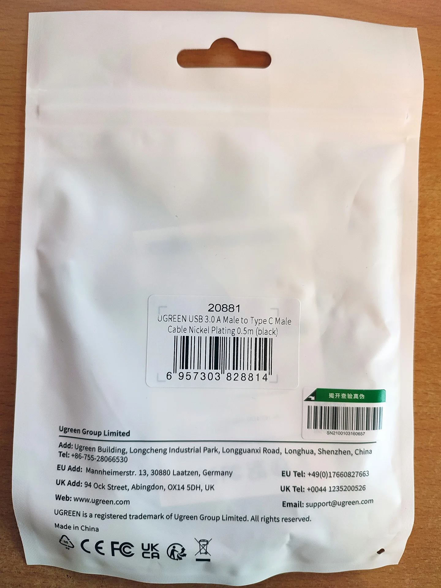 Кабель действительно качественный, usb 3.0 поддерживает. Пришел в собственной упаковке с логотипом Ugreen.