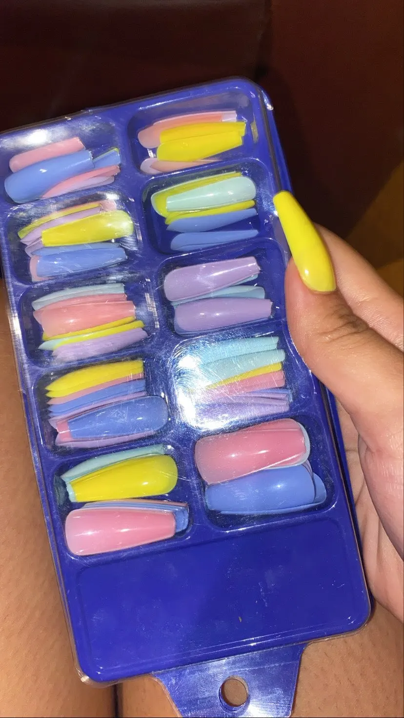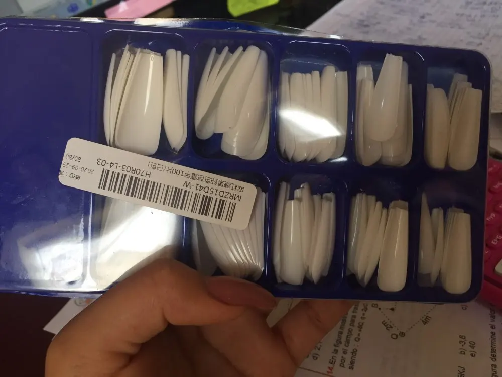 Доставка была очень быстрой, и ногти красивые. Материал твердый, и это говорит вам, что он не сломается до минимального, как и другие ногти, которые я испытал. Мои пальцы довольно маленькие (даже стилисты сказали мне, что они не могут найти, что носить), но этот комплект имеет различные размеры, которые подходят вам. Они довольно длинные, и это дает вам выбор, чтобы изменить их к вам, как я, пожалуйста, и форма его как вам нравится. Я обязательно повторю покупку.