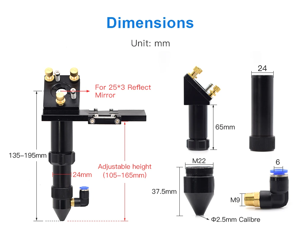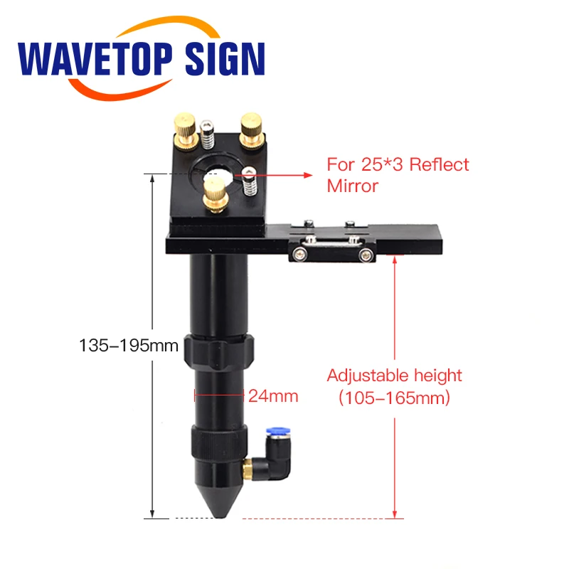 Лазерная головка WaveTopSign CO2 для фокусирующей линзы диаметром 20 fl, 63,5 мм, зеркальное крепление 25 мм для лазерного гравировального станка