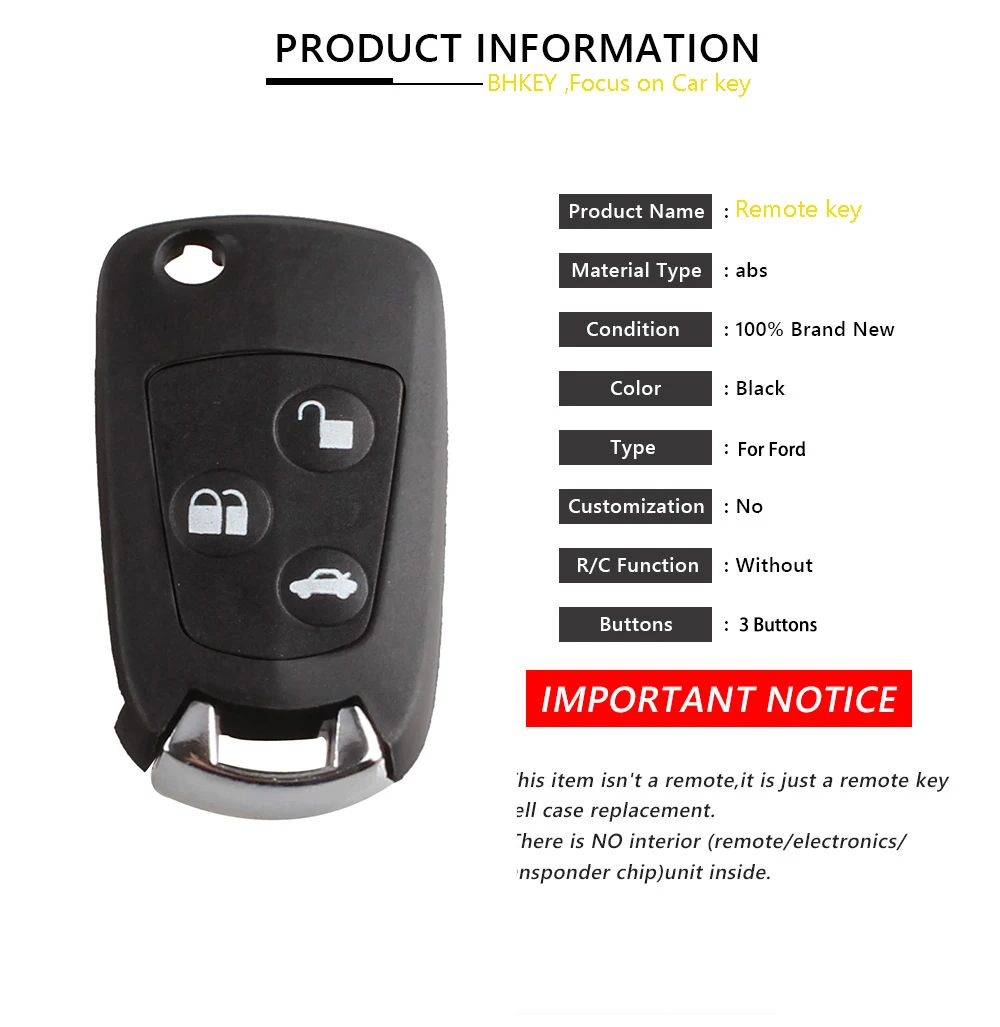 Сменный Чехол BHKEY корпус автомобильного ключа дистанционного управления для Ford Mondeo Focus 2 3, Festiva, Fiesta, HU101FO21 Blade автомобильный смарт ключ-брелок