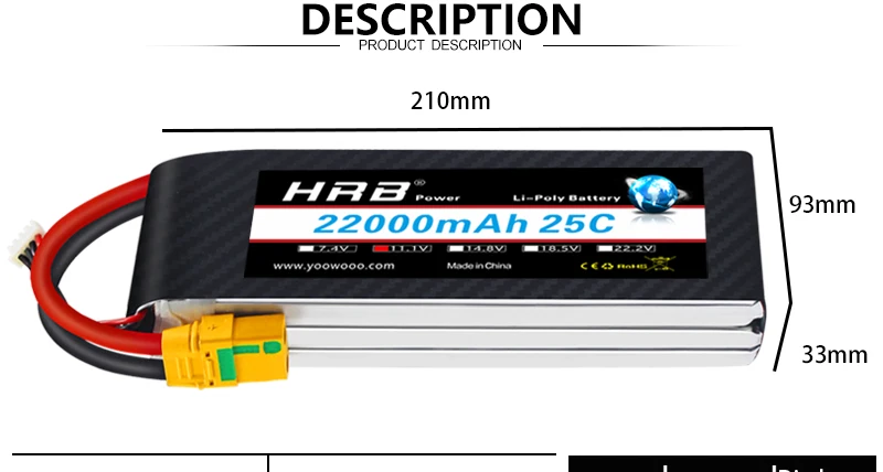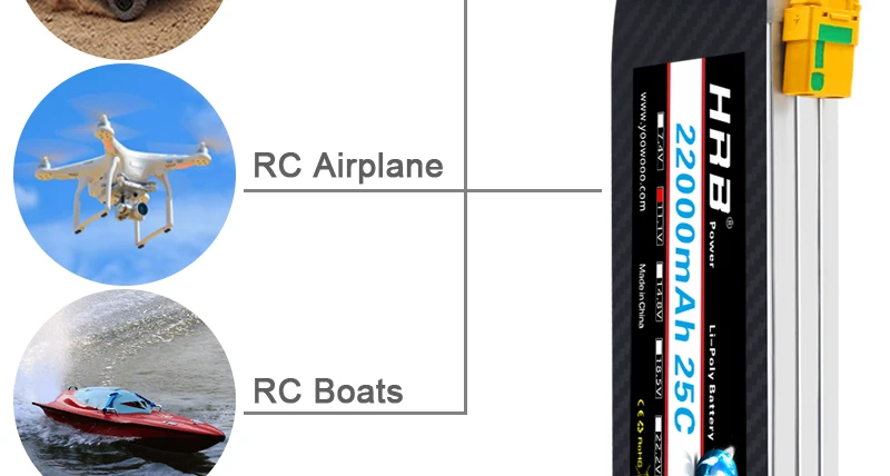 Аккумулятор HRB 6S XT60 22,2220018002600330040005000600010000120001...