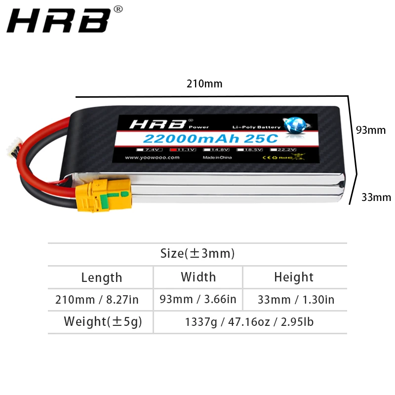 Аккумулятор HRB Lipo 3S 11,1 V 22000mah XT150 AS150 XT60 XT90-S T Deans EC5 XT90 для распыления беспилотных вертолетов