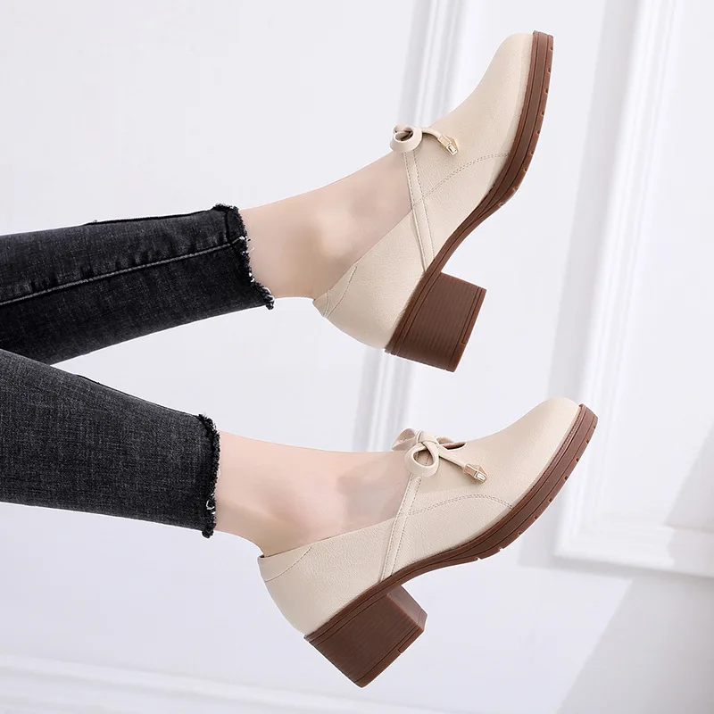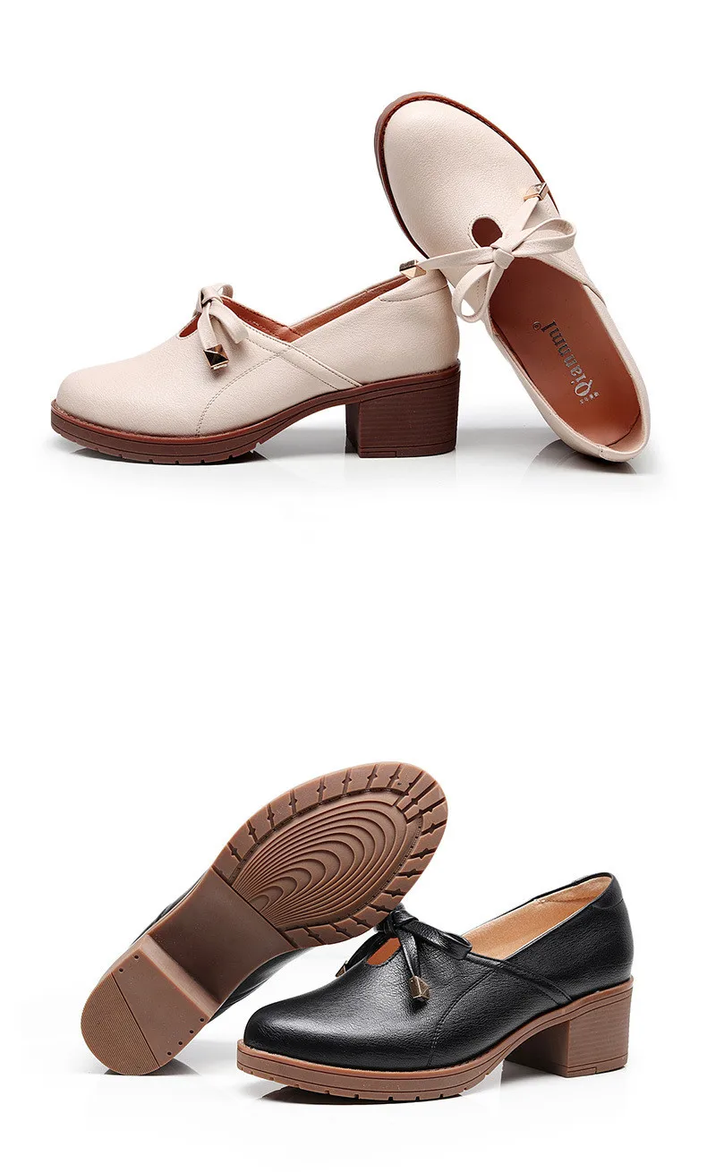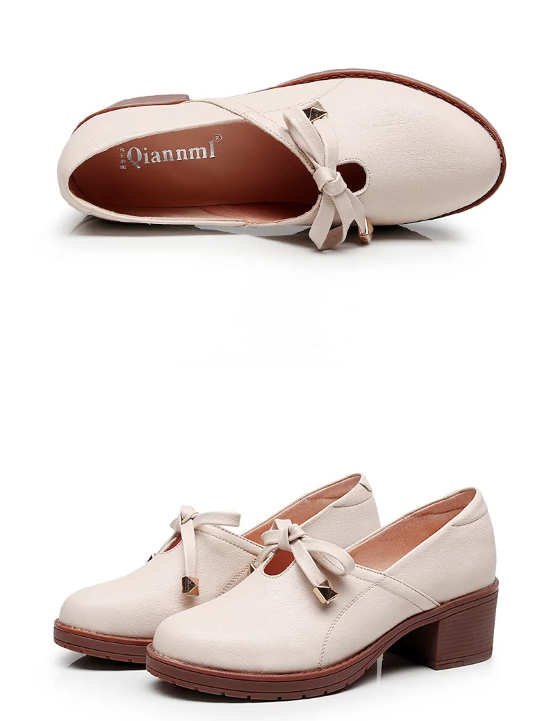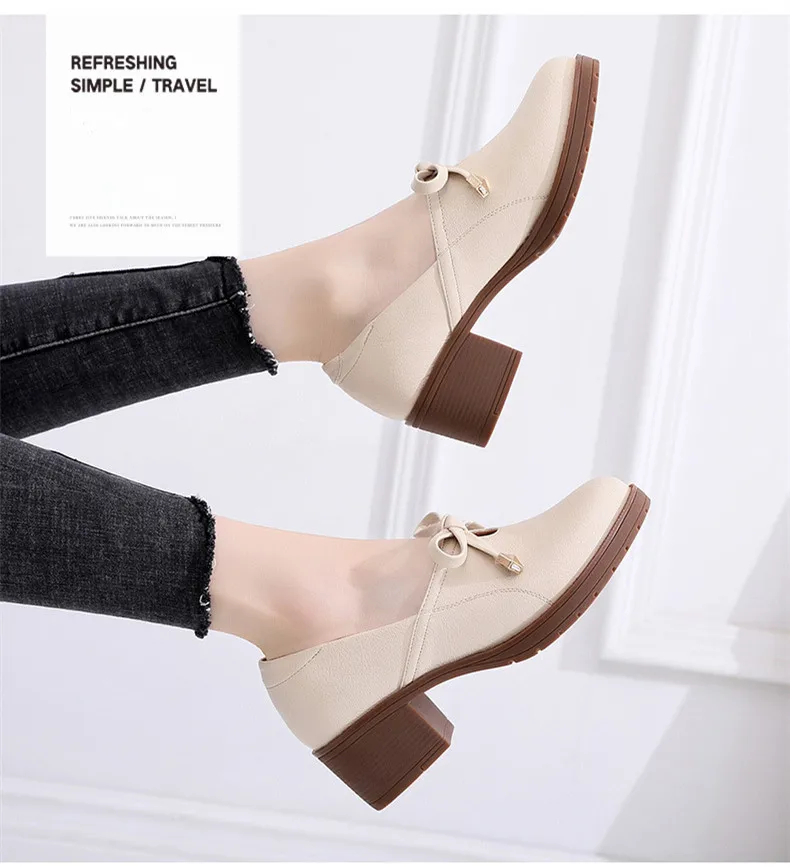 Новая женская обувь модная повседневная обувь с круглым носком, без шнуровки, с бантом-бабочкой, на квадратном каблуке, большой размер, дышащая Высококачественная нескользящая обувь из PU искусственной кожи
