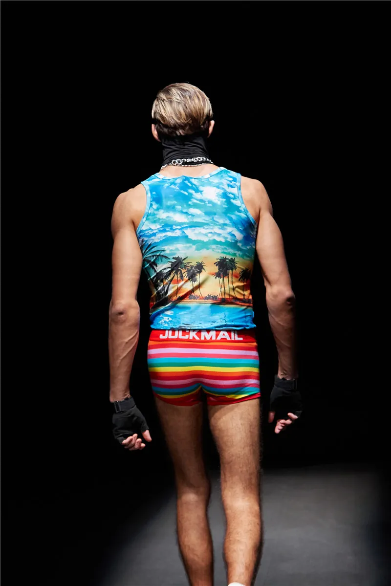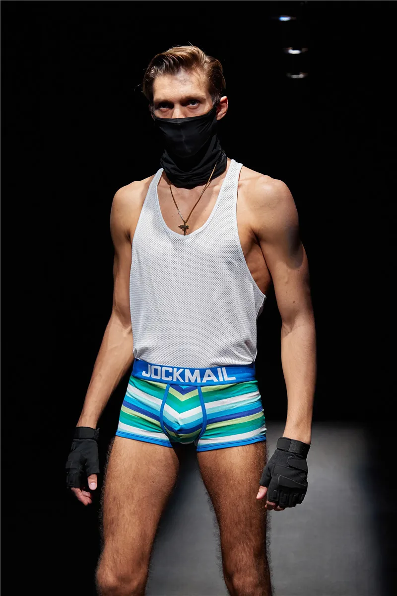 Трусы-боксеры jockmail мужские с низкой посадкой, пикантное нижнее белье, дышащие шорты в радужную полоску, с мешочком, нижнее белье для геев