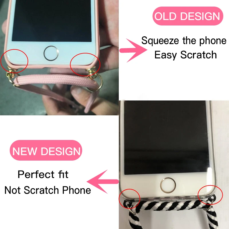 Features 3Case With Crossbody Necklace Metal Cord Lanyard For iPhone 7 8 Plus