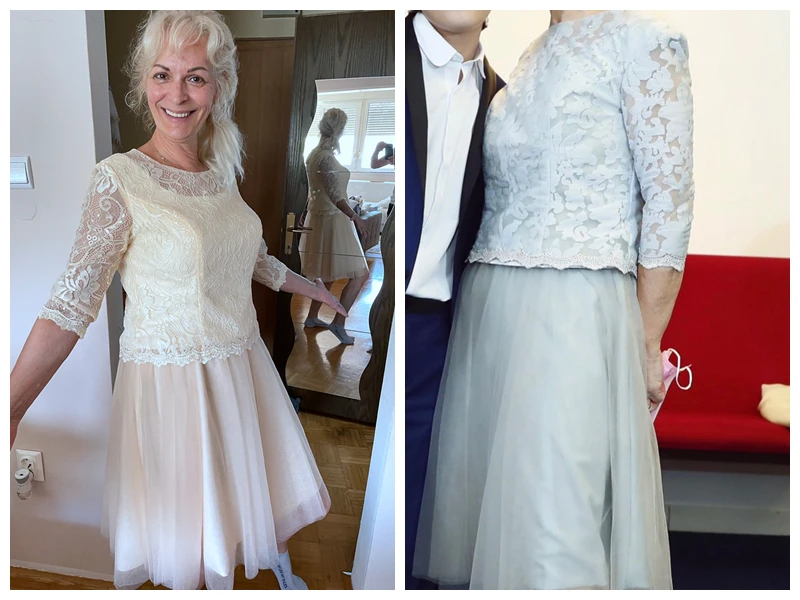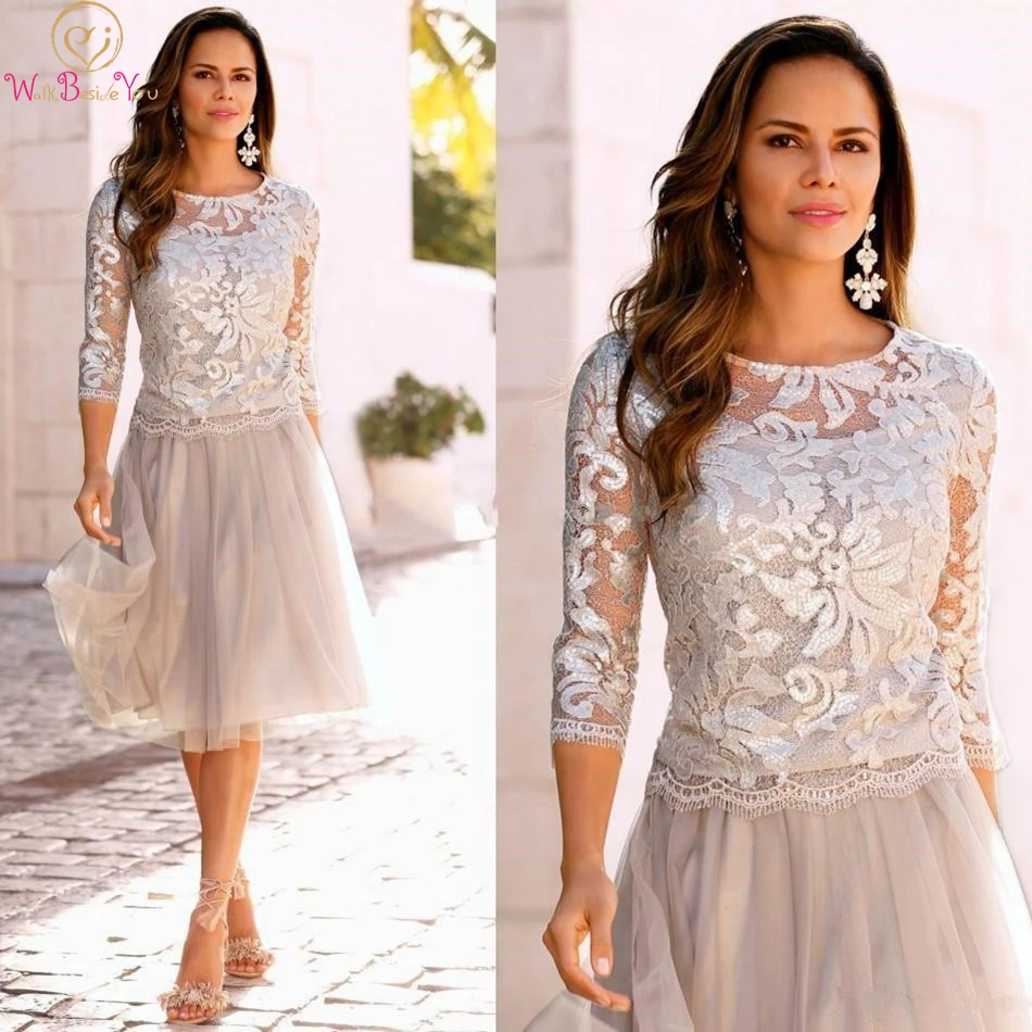 Новинка 2021, короткие платья для матери невесты, серые кружевные тюлевые платья до колен с длинным рукавом 34, короткие платья для гостей свадьбы и выпускного вечера