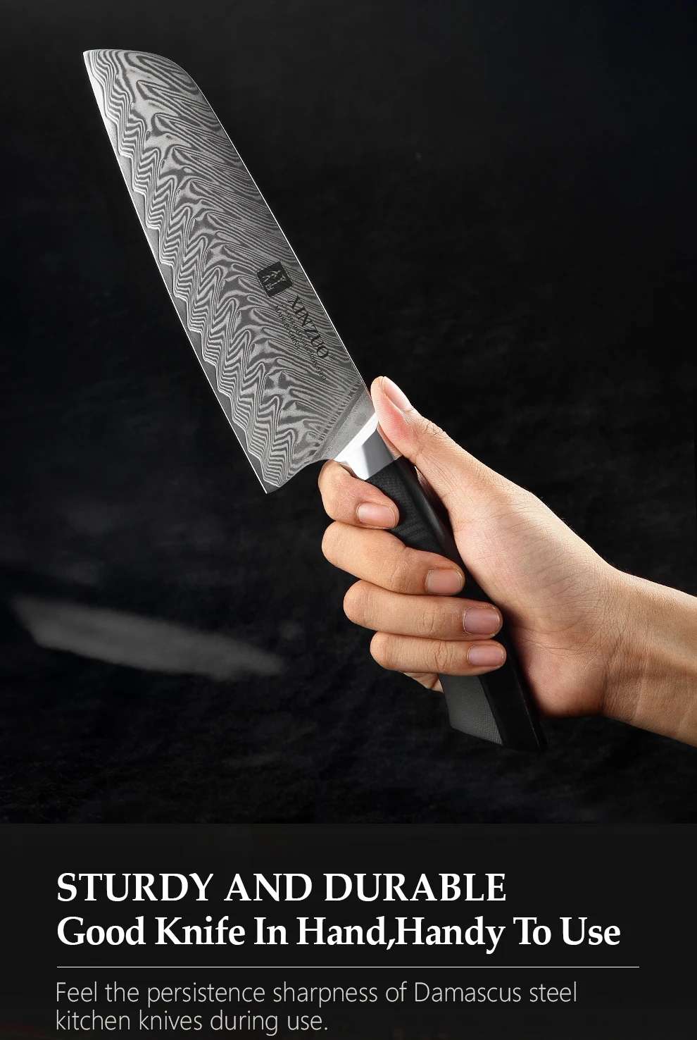 Профессиональный нож сантоку XINZUO 7,3 дюйма, лезвие из дамасской стали, острый кухонный нож, ножи для овощей из нержавеющей стали, поварские ножи