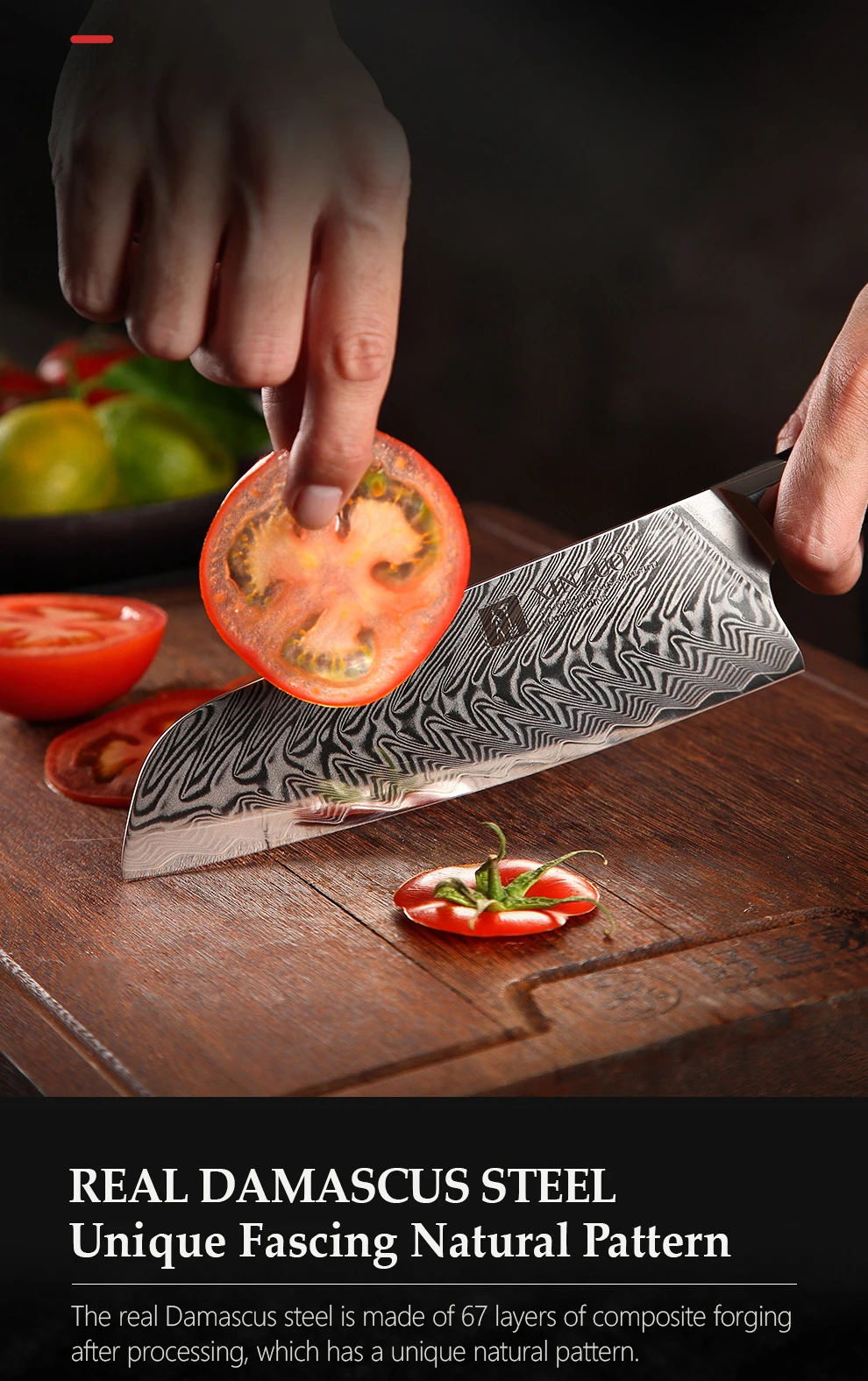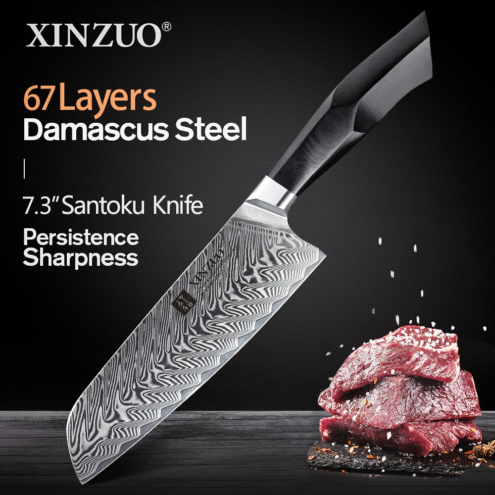 Нож XINZUO, 7,3 дюйма, Santoku, 67 слоев дамасской стали, острые и ...