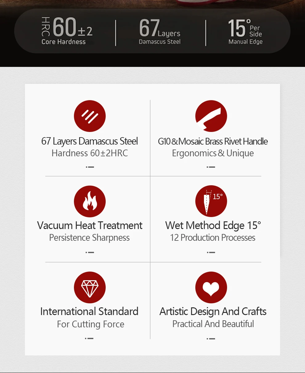 XINZUO 7,3 ''дюймов Тесак Ножи Janpanse 67 слоев из дамасской стали...