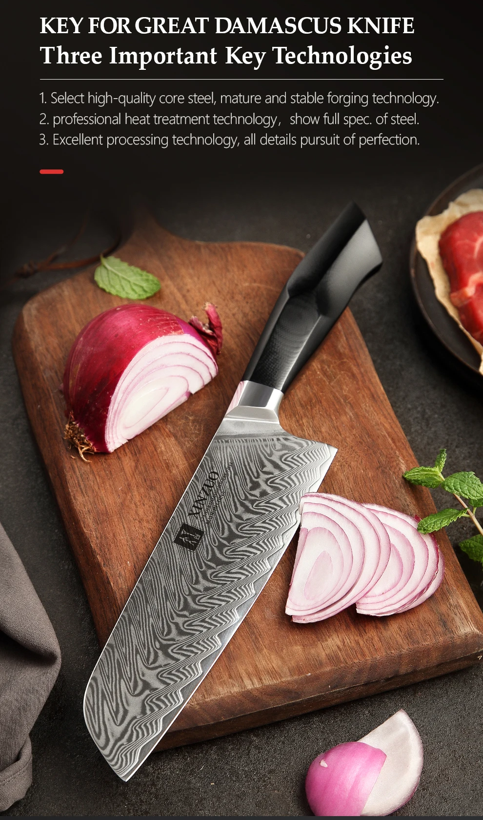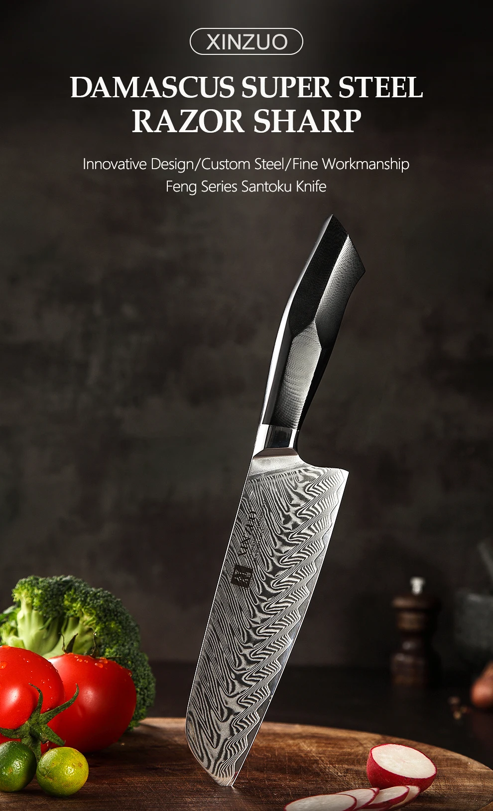 XINZUO Фэн серии Дамасская сталь Santoku нож