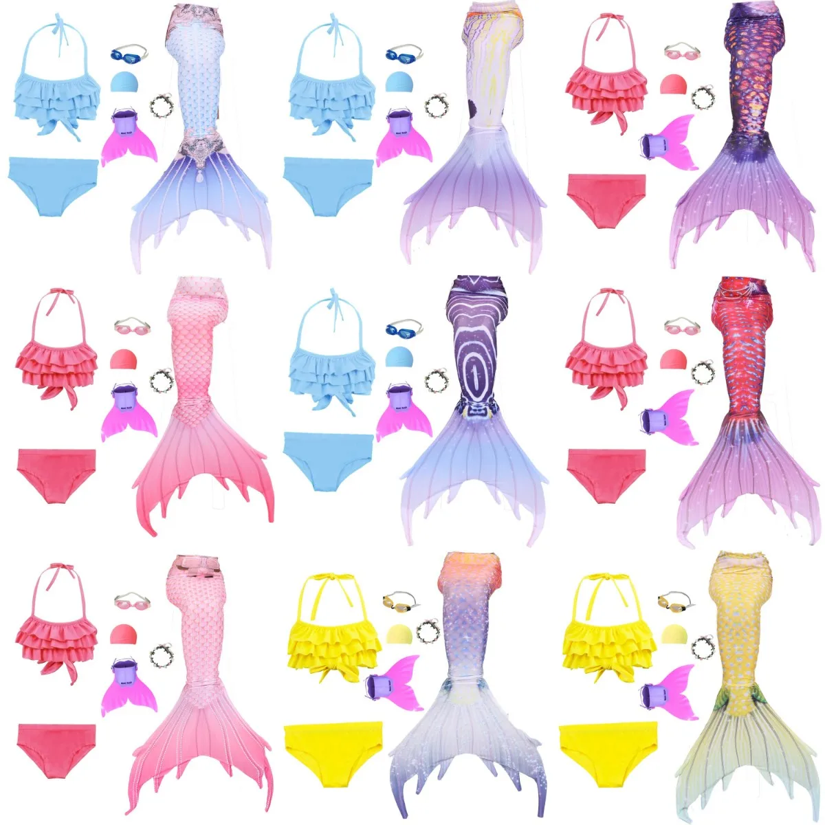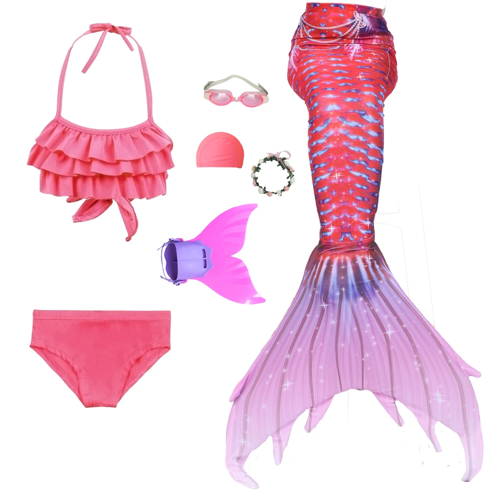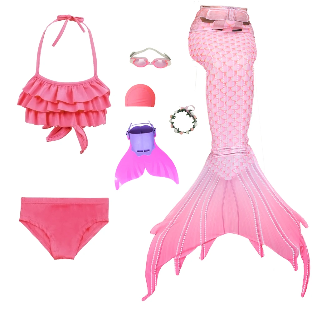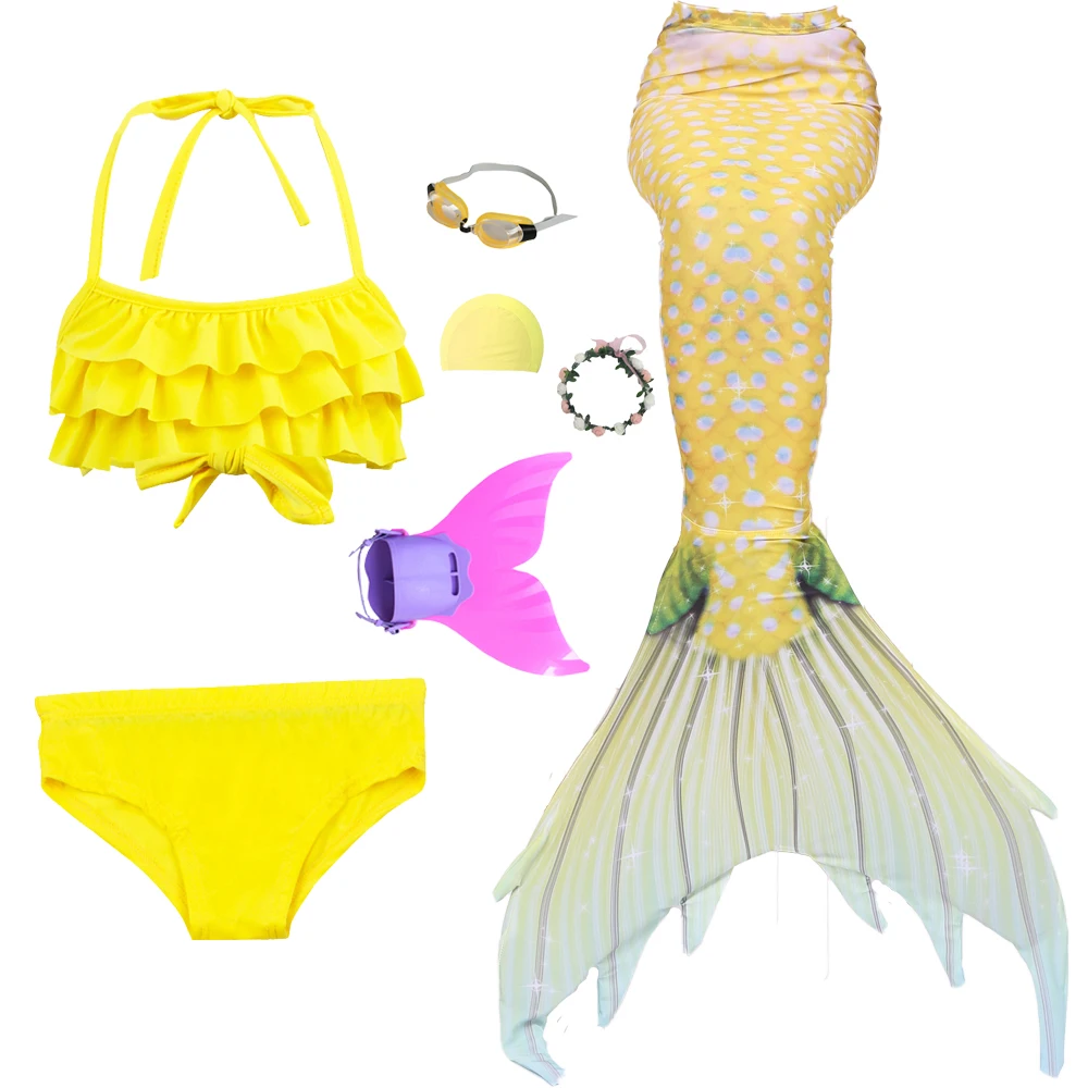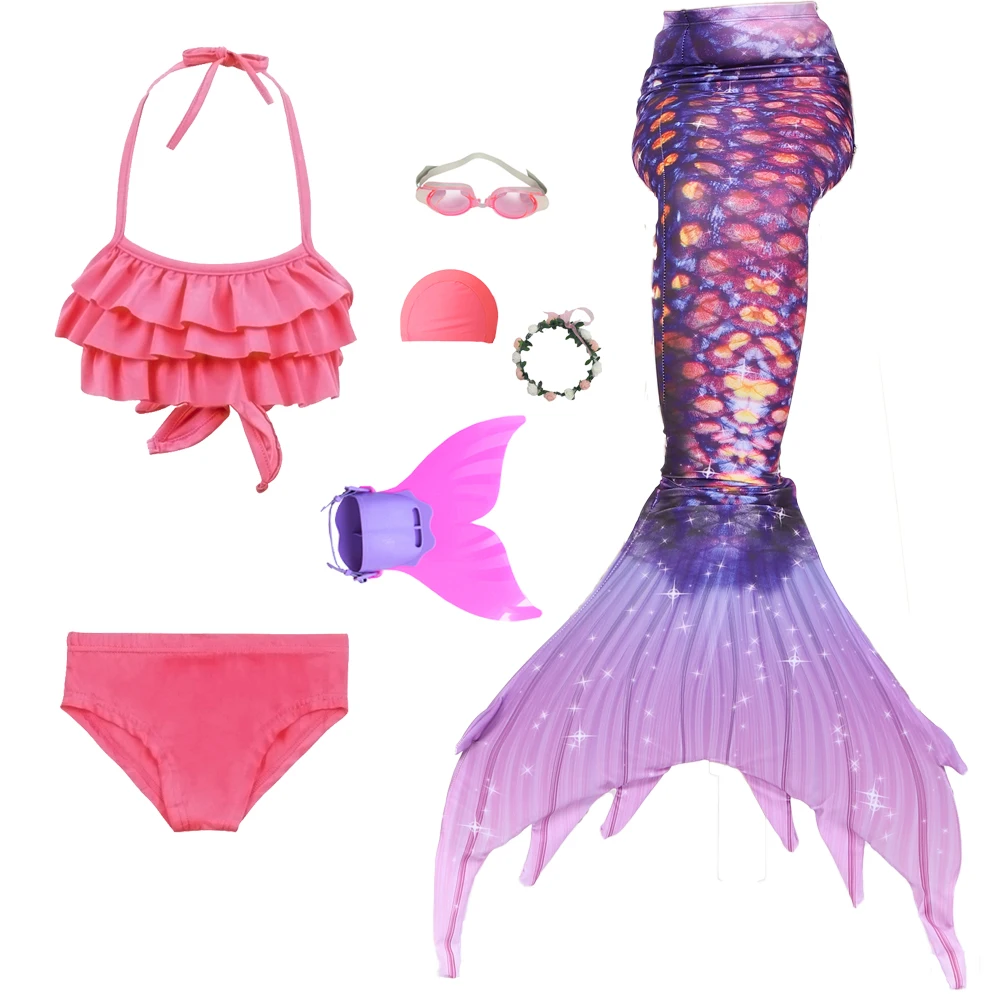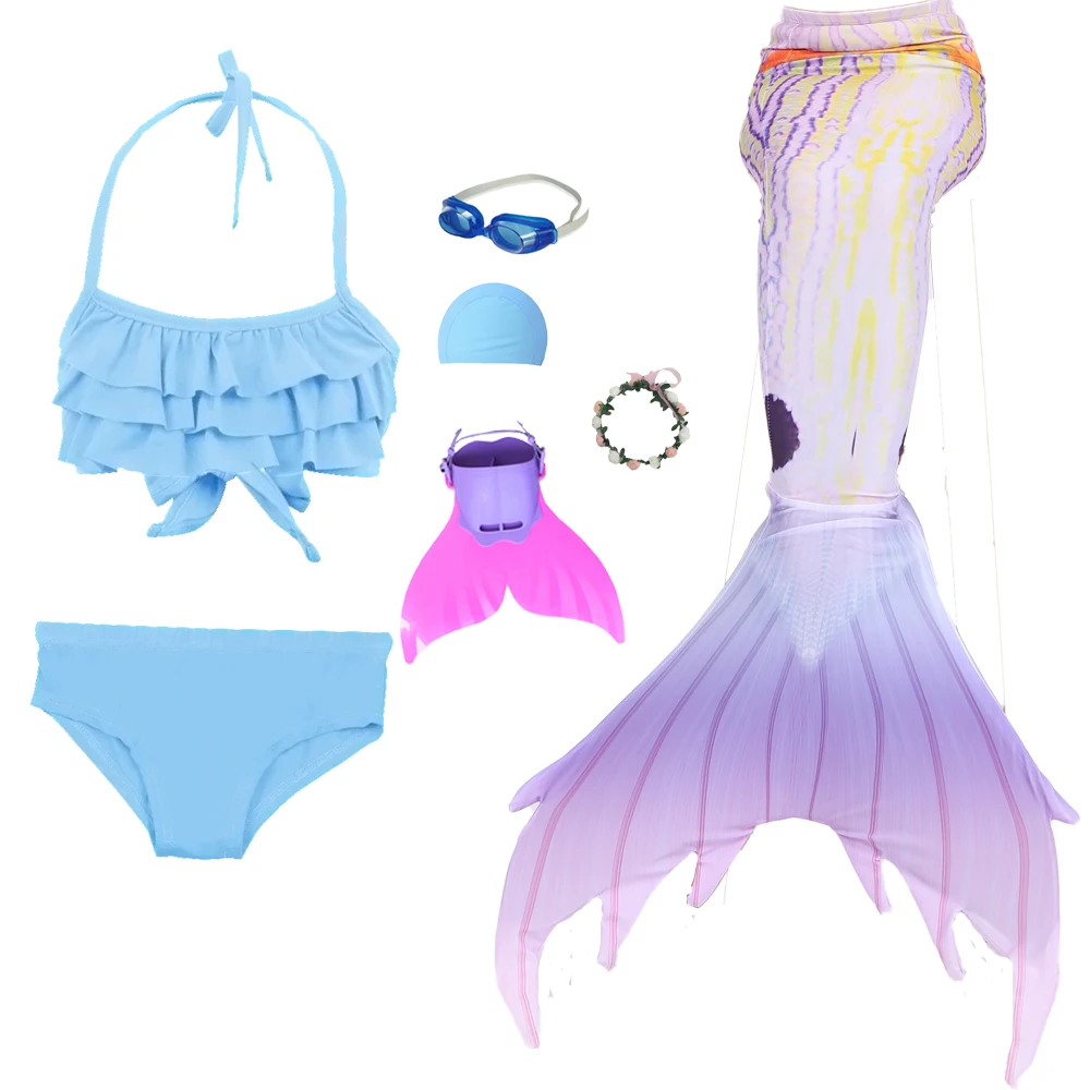 7 шт. Стиль: 1 бикини + 1 Нижнее белье + 1 хвост русалки + 1 монофин + 1 гирлянда + 1 очки + 1 шапочка для плавания.