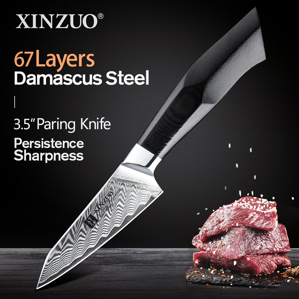 XINZUO Премиум 3,5 дюймовый нож для очистки овощей 67 слоев Дамасская супер стальная кухонная утварь G10 Ручка овощерезка инструменты