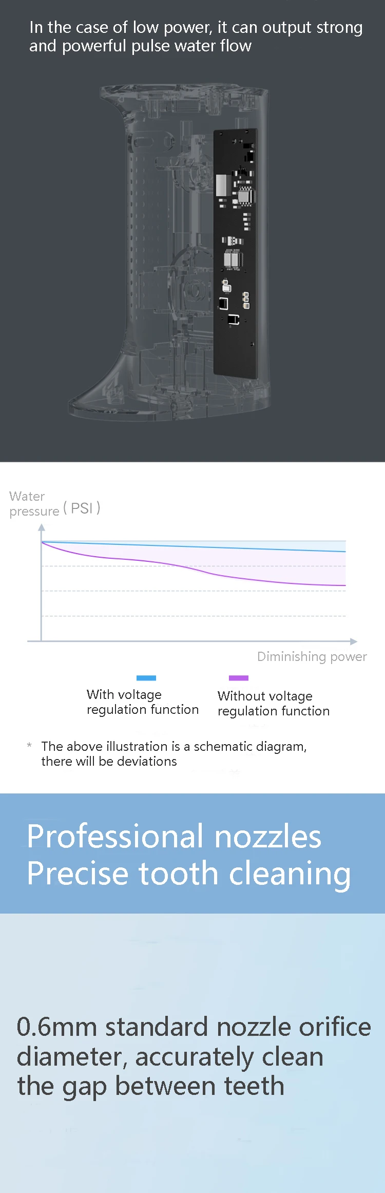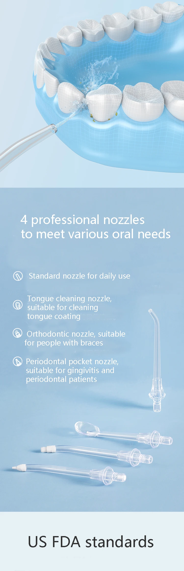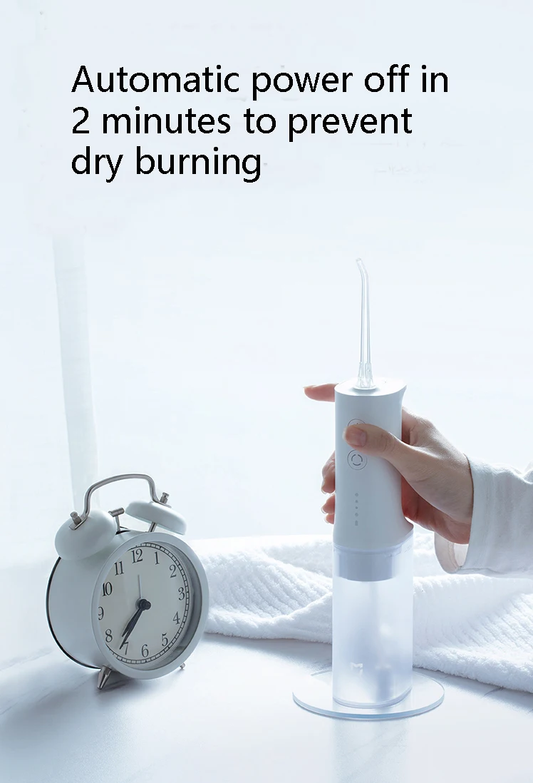 Товары Xiaomi Mijia ирригатор для полости рта водный Флоссер Бренд Xiaomi Mijia Модель MEO701 Источник питания USB решежер Материал Эко абс Возрастная группа для взрослых ортодонтических людей Защита от вартера IPX 7 Резервуар для воды 200 мл Время зарядки 4 часа Время использования 45 дней Посылка входит резервуар для воды x 1 Корпус x 1 Стандартная насадка xl Ортодонтическое сопло x 1 Пародонтальная карманная насадка x 1 Насадка для чистки языка x 1 Кабель для зарядки Type-C x 1 Коробка для хранения насадок x 1 Руководство x 1 "Особенности: 1. Высокочастотный импульсный поток воды. Оснащен новой угольной щеткой Интеллектуальный двигатель с постоянным магнитом с давлением воды до 140PSl, который может генерировать Высокочастотный импульсный водяной столб 1400 раз/мин 2. Уникальная система стабилизации давления воды 3,4-скоростной режим, с функцией памяти шаблона, сильный режим, стандартный режим, чувствительный режим, импульсный режим Резервуар для воды большой емкости 4,200 мл 5. Автоматическое отключение через 2 минуты Стандартный диаметр сопла 606 мм. Точно очистите мертвые пространства между зубами Аккумулятор 7,2200 mAh, 45 дней автономной работы." PS: водонепроницаемый IPX 7 означает, что прибор погружается в воду на 1 минуту на 30 минут, а прибор не повредится погружением в воду. Так как в ванне образуется большое количество пара, он может поступить в основной корпус зубной щетки. Не используйте его во время купания.