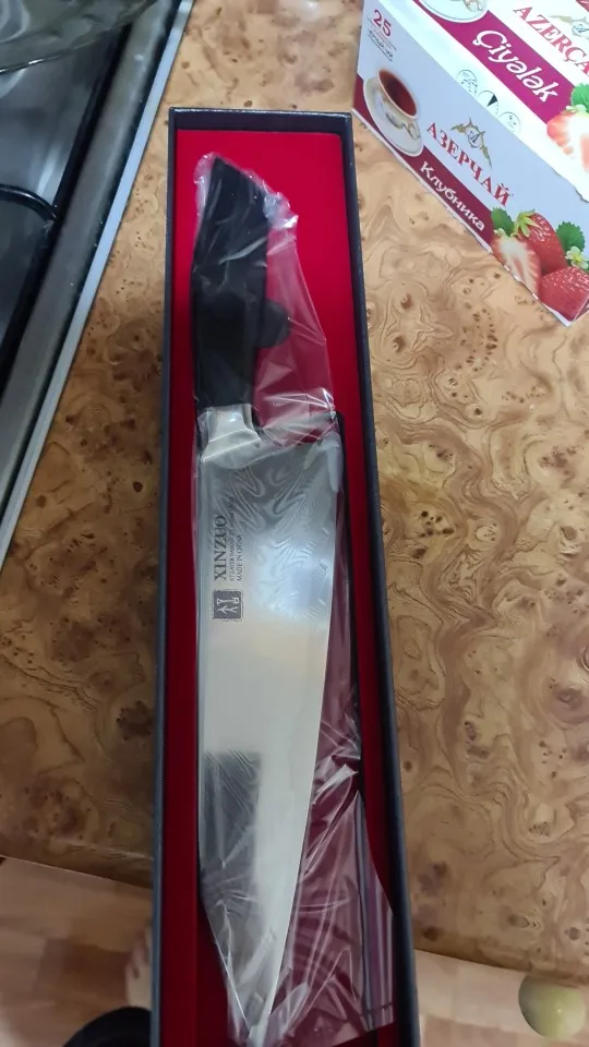 Посылка прибыла быстро, проходя через Испанию через Францию. Нож великолепен с нескользящей подкладкой в коробке. Дизайн, а также Эргономика рукава наверху. Даже если у меня есть сомнения по поводу подлинности дамы, я только что заказал кухонный нож и кухонный нож.