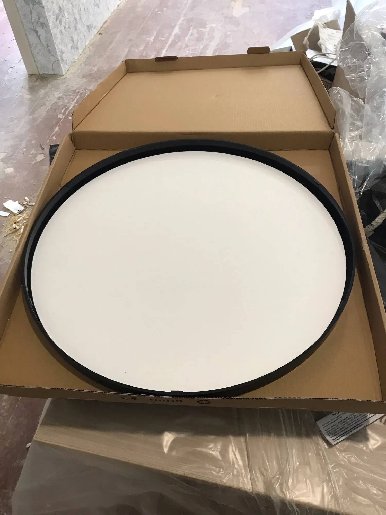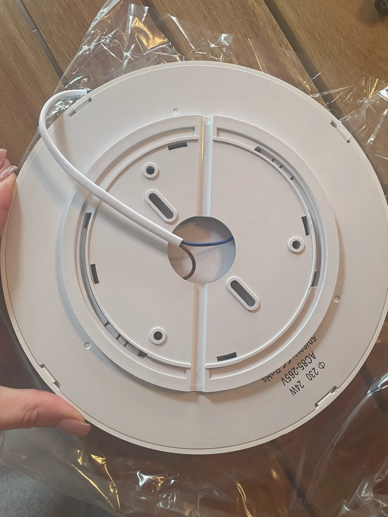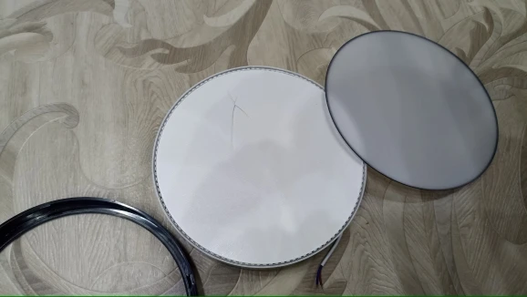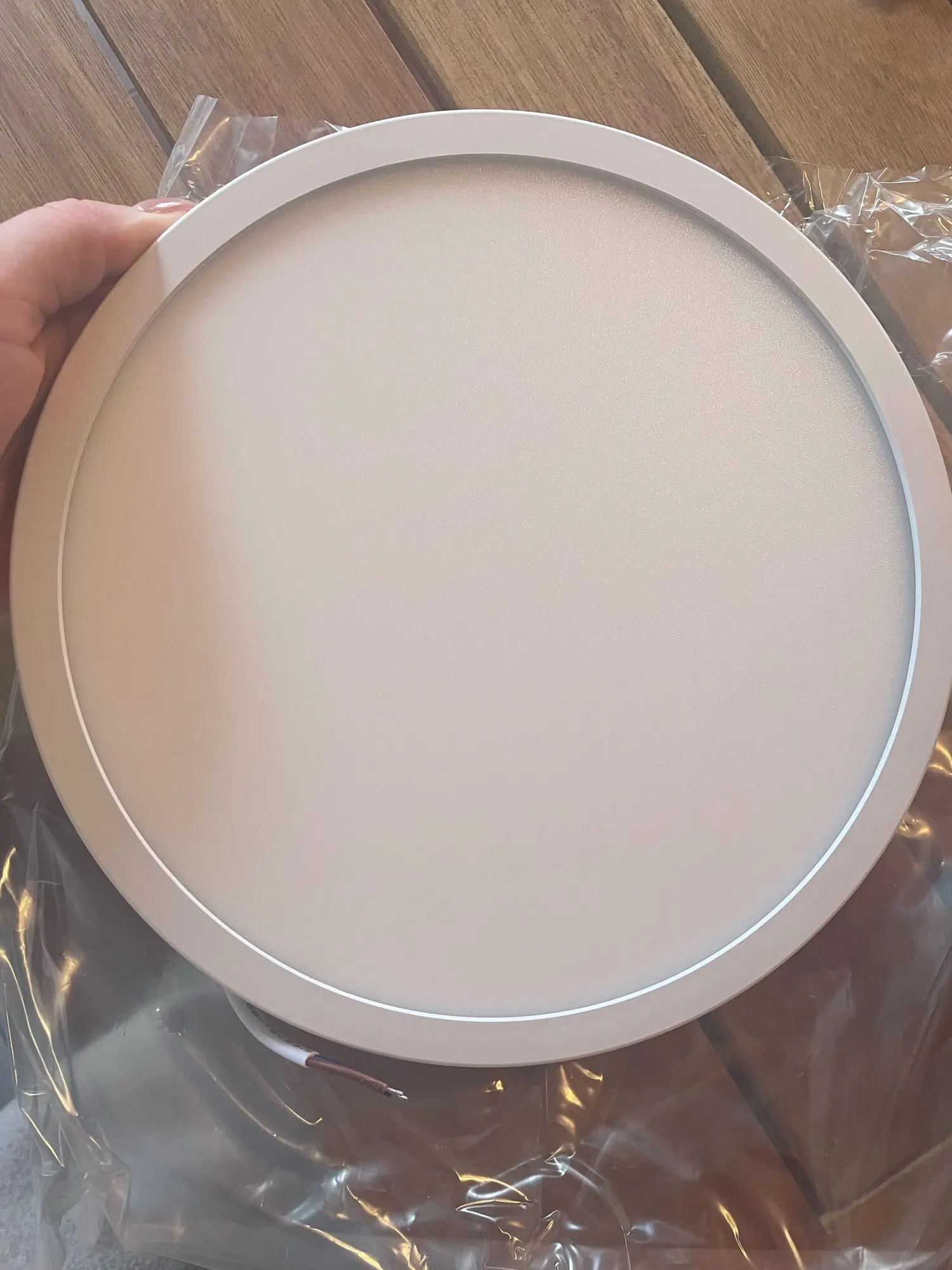 Доставка пары "блинов" помельче в Башкортостан из РФ, на кассу "Пятёрочки" -- очень быстро. Заказывал три разного диаметра, самого большого нужного цвета в РФ не было -- ехал дольше по Китаю, но по РФ СДЭК удивил скоростью. Светильник реально тонкий и светит ярко (естественный дневной цвет, средняя цветовая температура). Ободок чёрный пластиковый. Круглая защёлка-крепление поворотная вроде надёжно выглядит, размер универсальный -- разного диаметра светильники можно перекинуть местами. Рассеиватель хорош, отдельных светодиодов не видно вообще... но он не стекло и не твёрдый пластик -- а что-то вроде вспененного полиэтилена с очень мелкими ячейками, надо следить, чтоб не ткнуть чем-то и не повредить, не запачкать поверхность. Повешу на потолок -- дополню отзыв. Товар и продавца рекомендую!