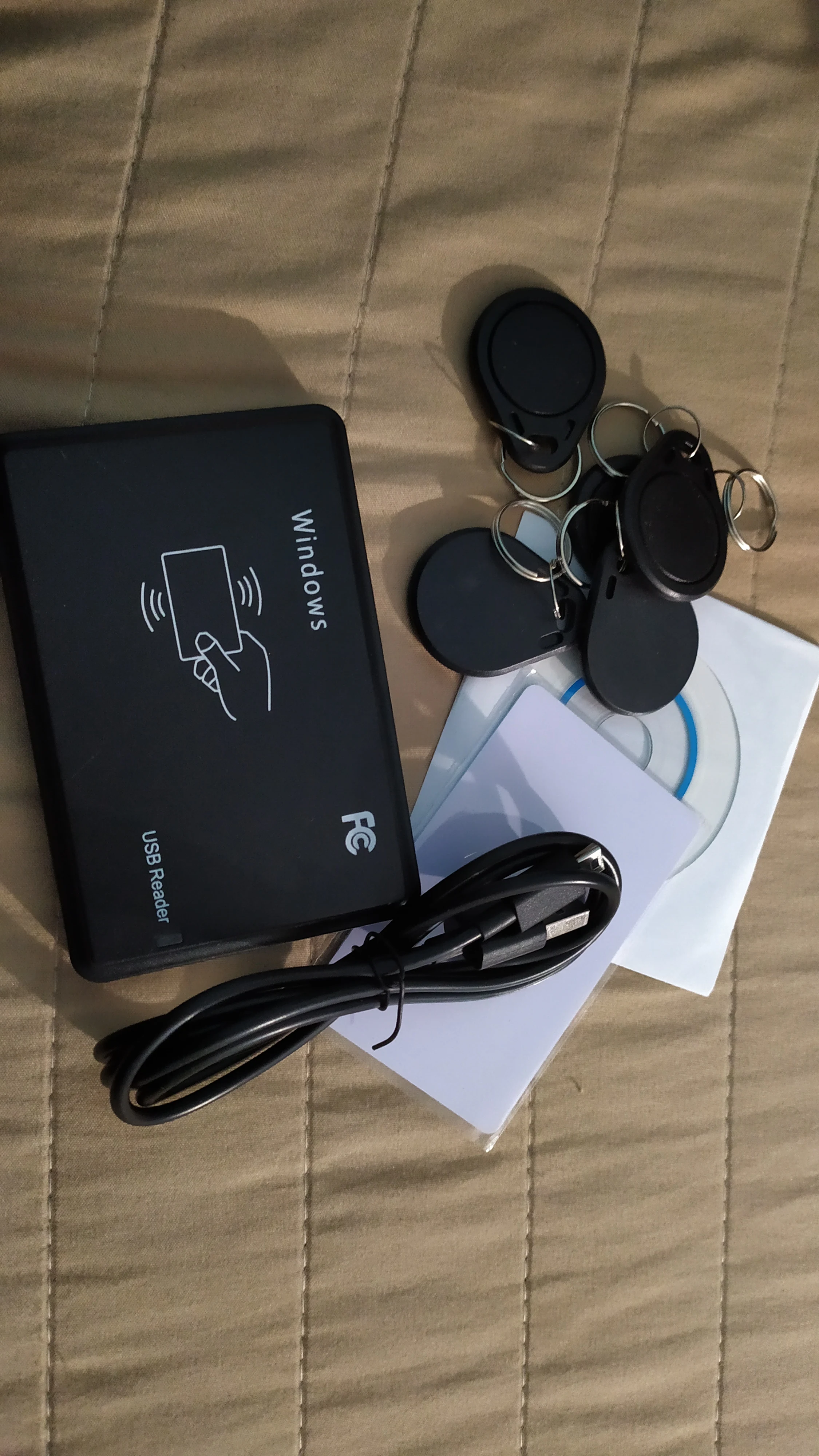 Купленное устройство не пригодилось, оно не умеет "притворяться устройством ввода HID", а только показывать код из меток или записывать код в метки. Примите это к сведению!!! Возможно это "чудо" можно прошить и заставить работать как вам надо, но это уже другая история. Продавец отзывчивый, и хоть и хотел помочь, но к сожалению не смог.