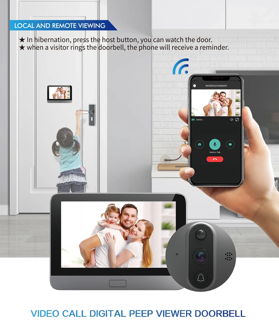 Видеодомофон Jeatone, беспроводной Wi-Fi дверной звонок, экран 4,3 дюйма, с датчиком движения, ночным видением, для домашней безопасности, видеодомофон