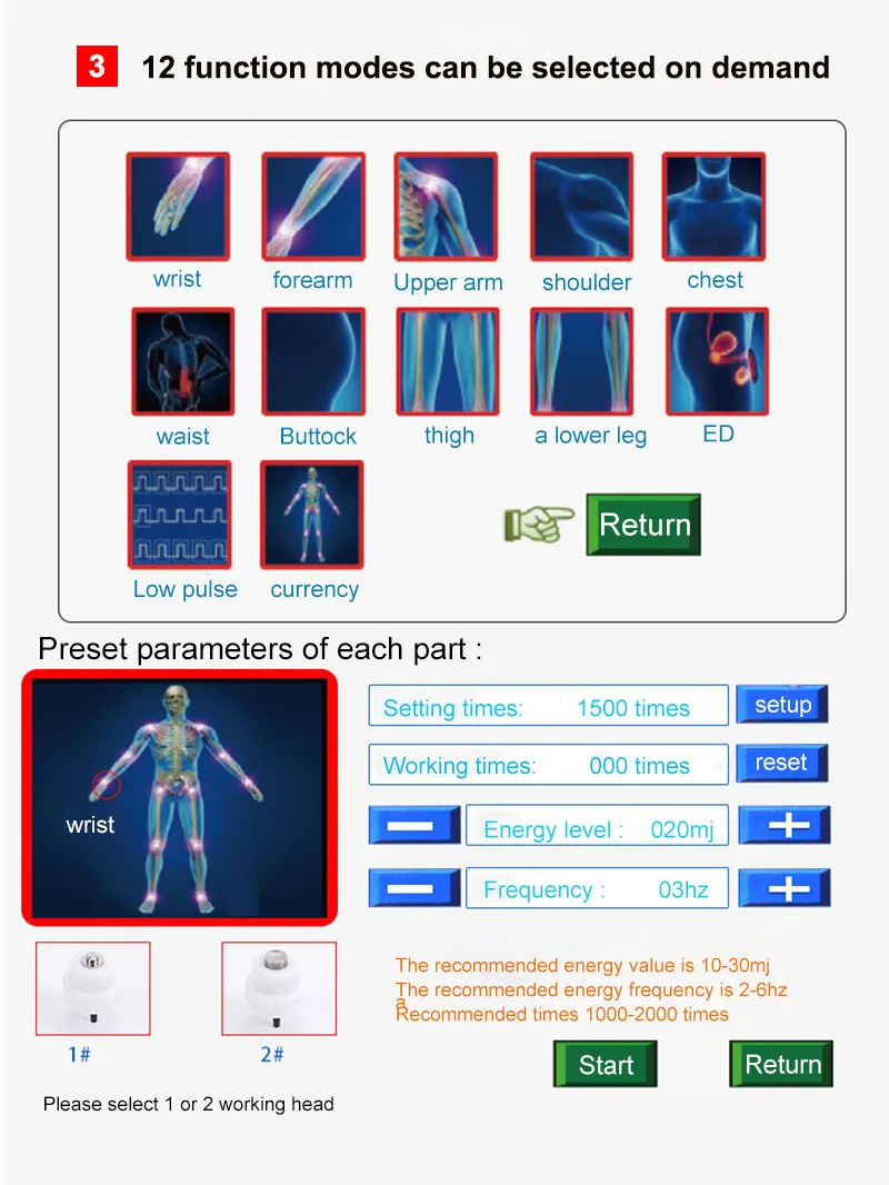 Электромагнитный: импульсный ток высокого напряжения, идущий через катушку, создает магнитное поле, затем толкает мембранное движение, чтобы производить ударные волны, он будет фокусироваться на плоской траектории, или разбросаны в тело и сделать соответствующее лечение