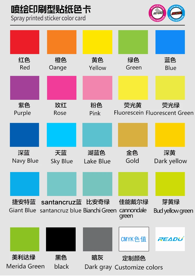 3. Есть три вида велосипедных наклеек, у нас есть специальное представление ниже, а затем поставляется с общей цветной картой.