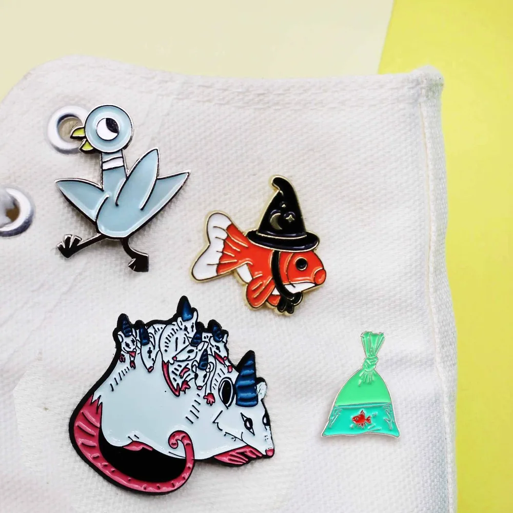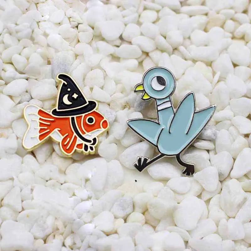 Эмалированные булавки в виде животных, золотая рыбка, мышь, крыса, утка, птица, черные броши-кошки вечерние, булавка, значок, Мультяшные украшения, подарки для женщин