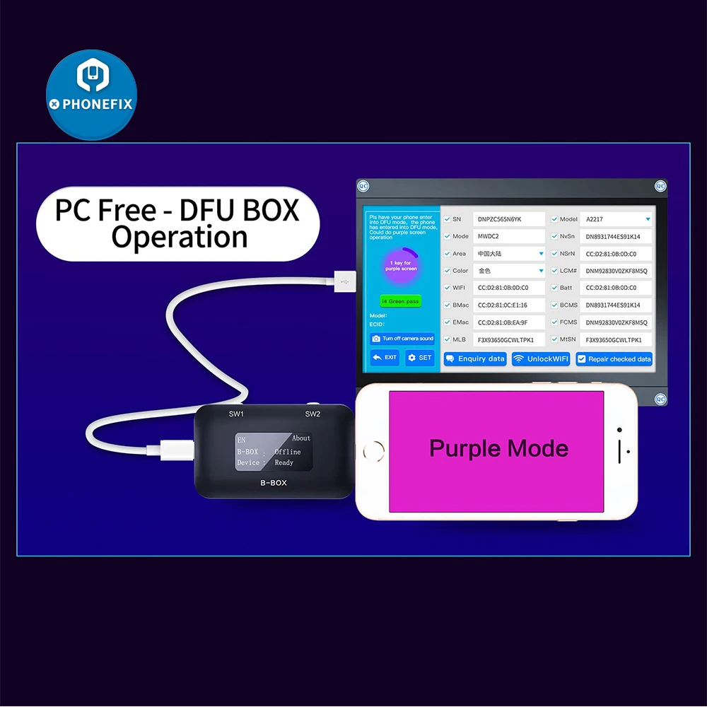 JC B-BOX Pro DFU One Butotn фиолетовый режим для IOS A7-A11 восстановление загрузки SN ECID информация о модели для iPhone и iPad
