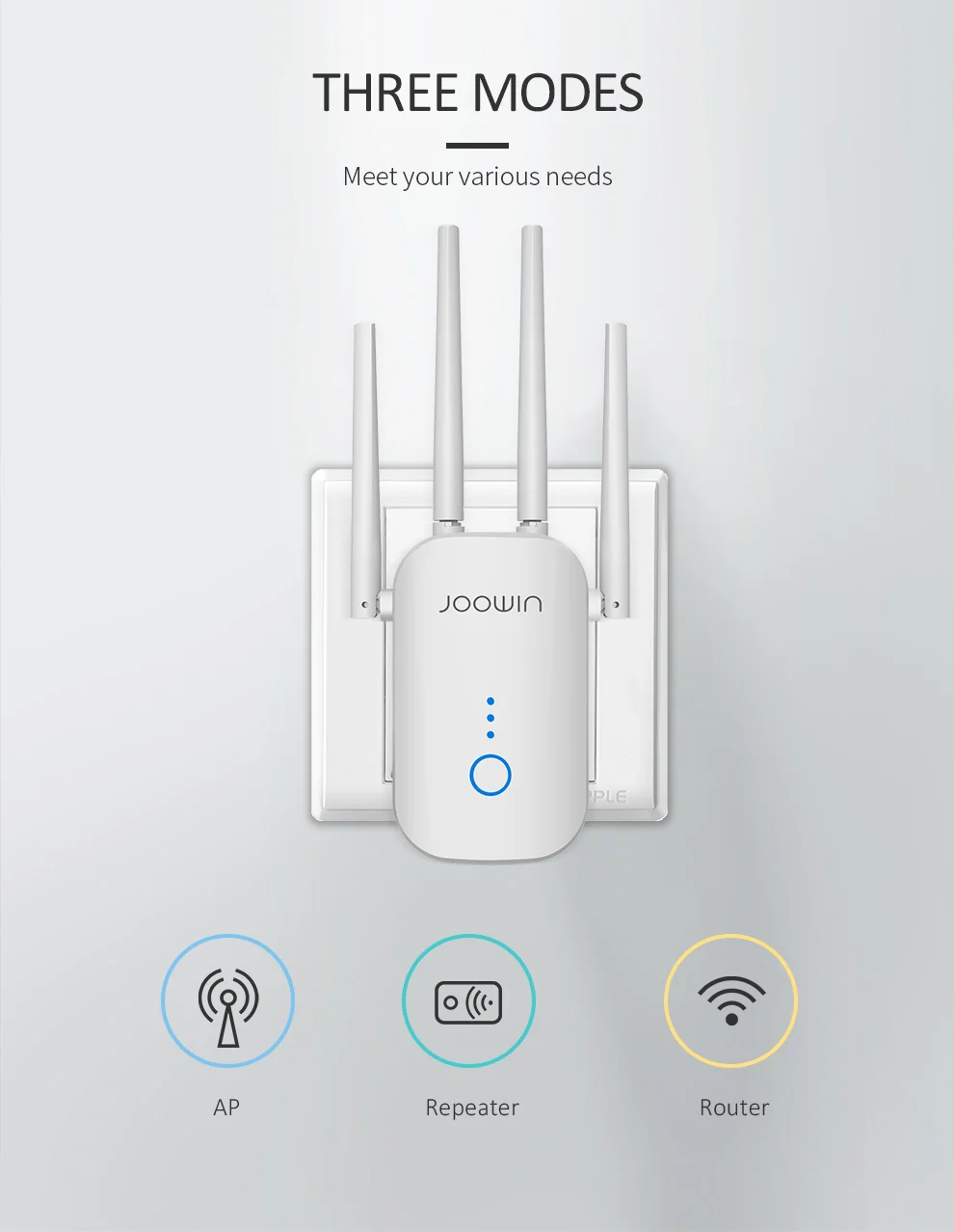 Двухдиапазонный ретранслятор Wi-Fi Joowin, 1200 Мбитс, 2,4 ГГц и 5,...