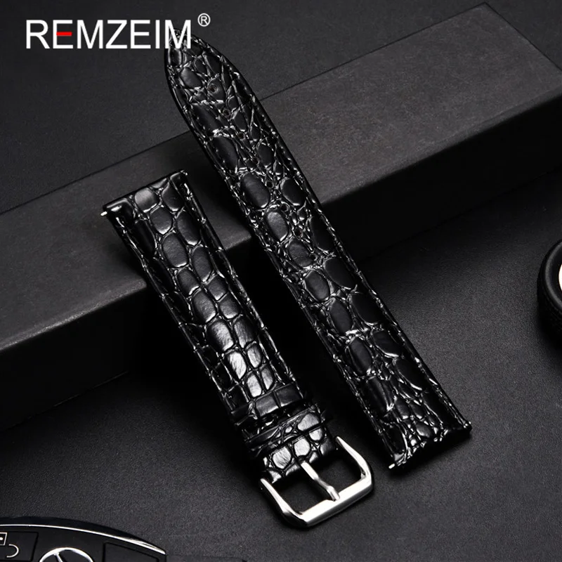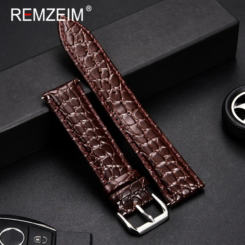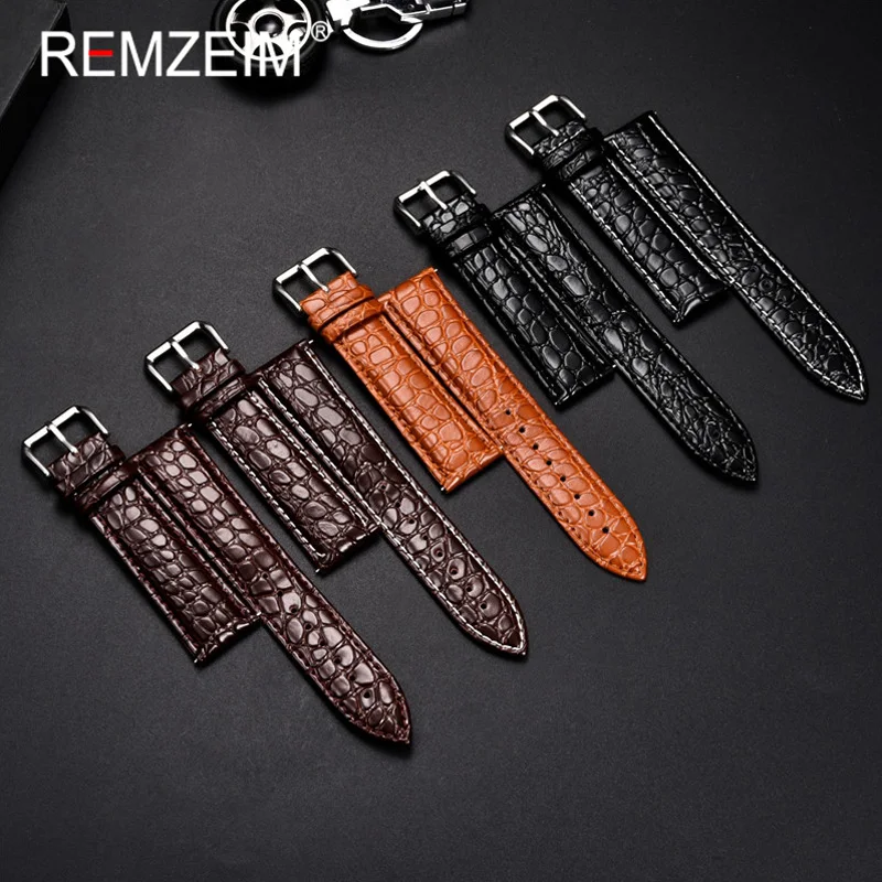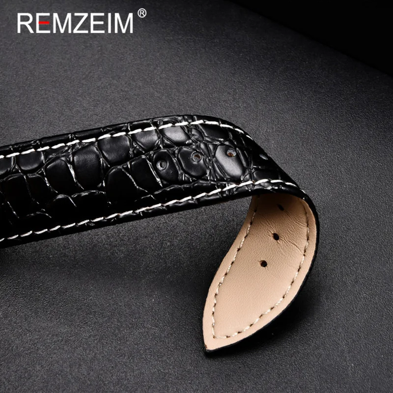 Ремешок кожаный REMZEIM для мужских и женских часов, сменный Браслет с пряжкой из нержавеющей стали, Часовые аксессуары, 16 18 20 22 24 мм