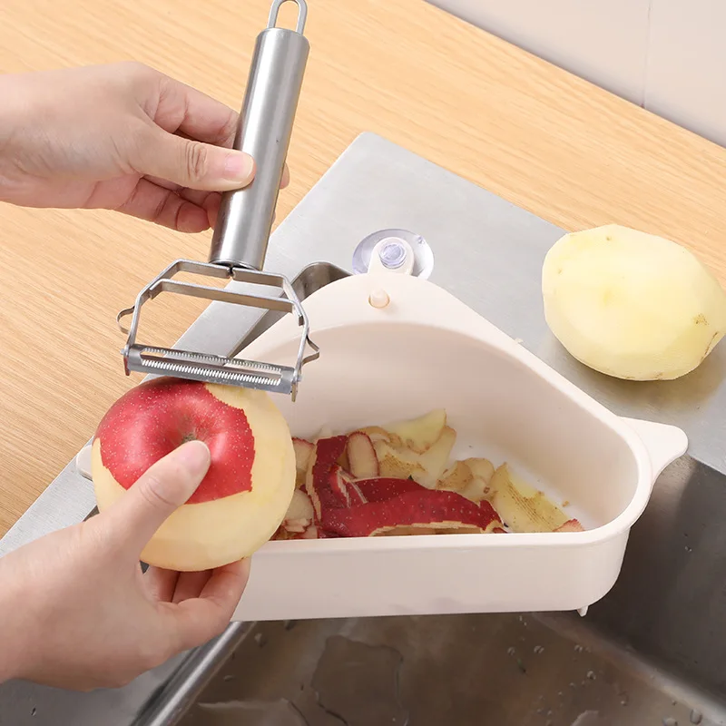 Треугольный сливной фильтр для кухонной раковины, корзина для сушки овощей и фруктов на присоске, подставка для губки, инструмент для хранения, полка для фильтра