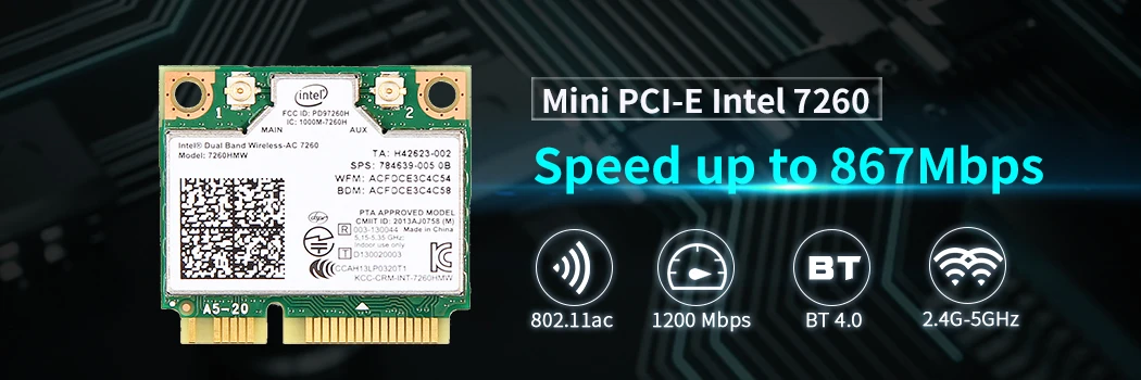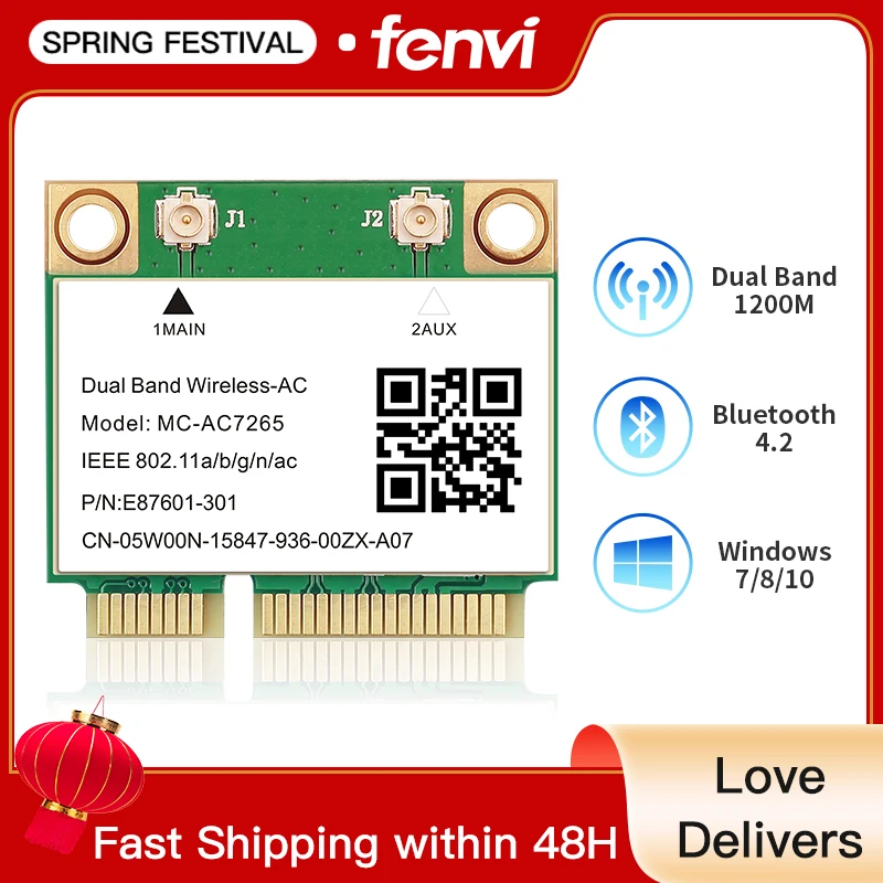 Беспроводная Wi-Fi-карта Half Mini PCI-E 1200, MC-AC7265 Мбитс, Bluetooth 4,2, 802.11ac, двухдиапазонный, 2,4 ГГц, 5 ГГц, адаптер для ноутбука, чем 7260HMW