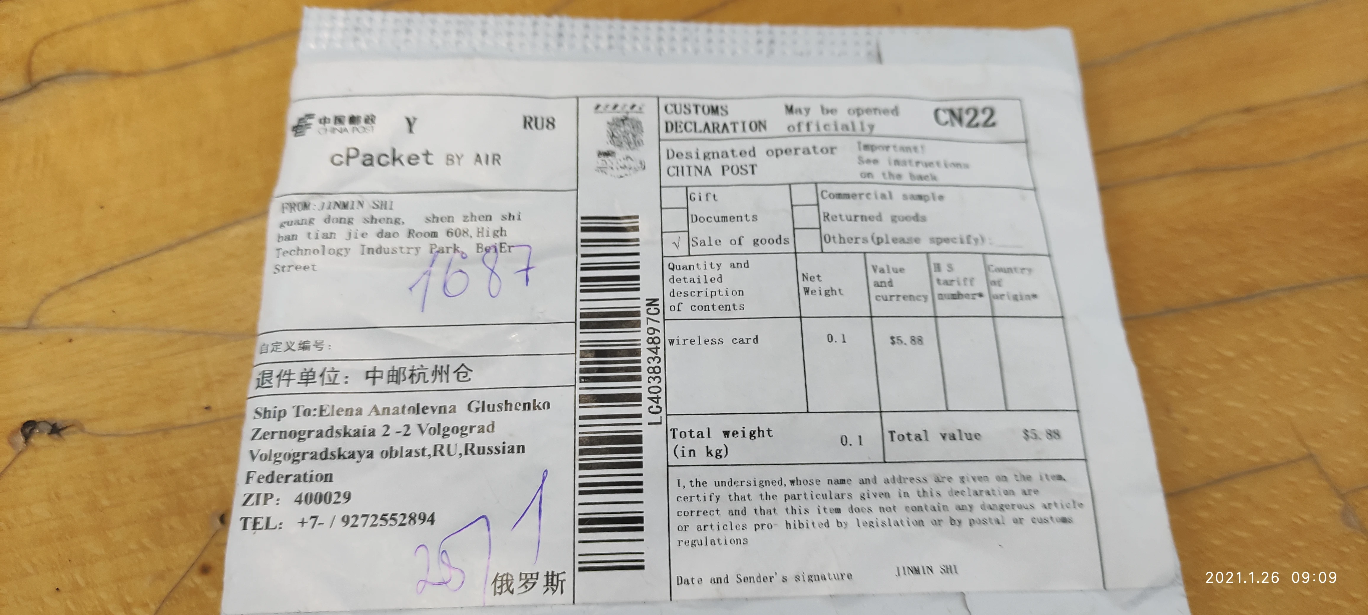 Товар получен и проверен, скорость интернета значительно увеличилась по сравнению со штатным модулем.
