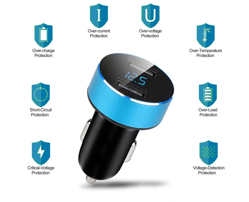 Автомобильное зарядное устройство с двумя USB-портами и светодиодным дисплеем, 3,1 А