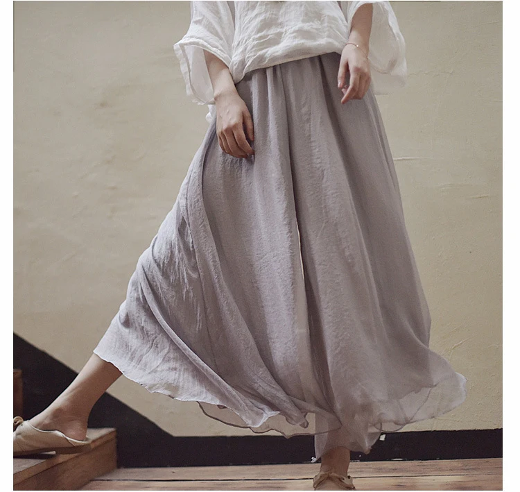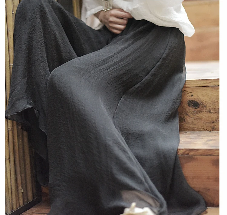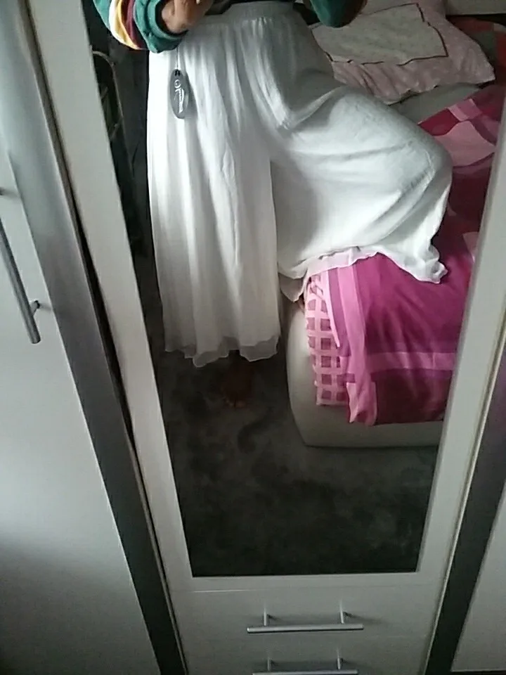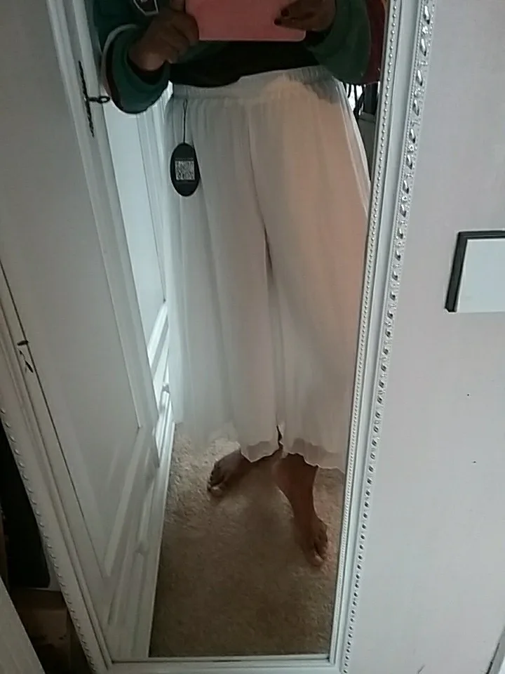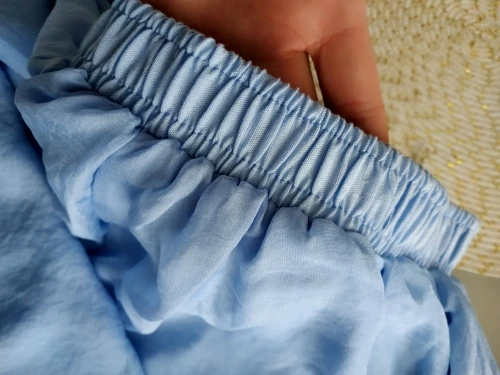 Классные штаны-юбка. Материал приятный к телу, холодит, развевается, ткань лёгкая. На резинке, резинка тянется хорошо. На мой объем талии в 85см не жмёт.