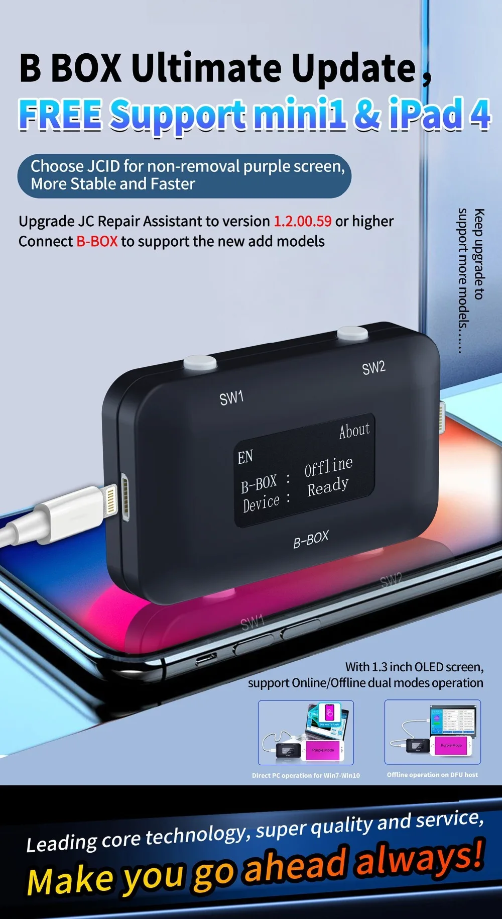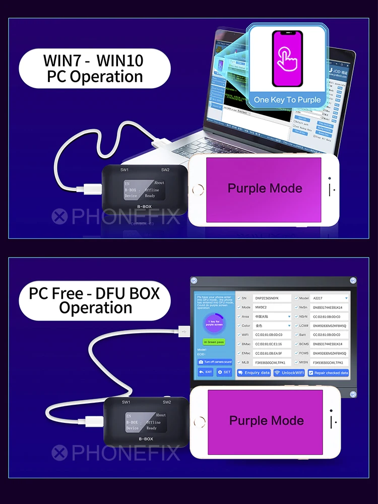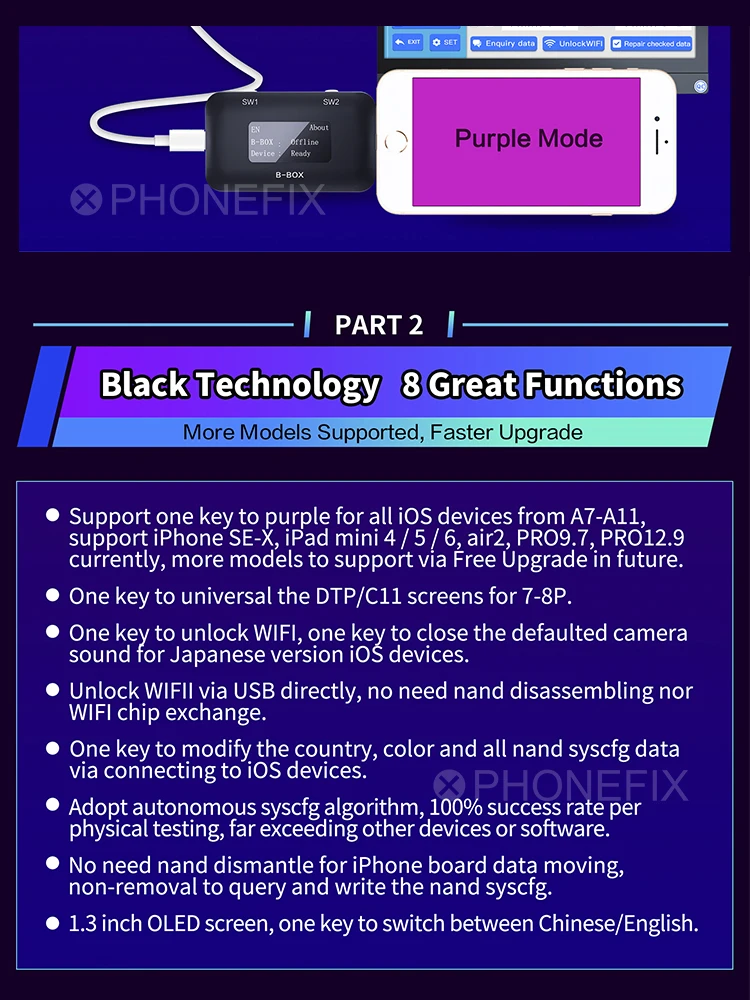 Плата JC B-BOX C3 DFU с одним ключом к фиолетовому для IOS, для iPhone и iPad, разблокировка Wi-Fi, модификация данных NAND Syscfg, аналог кабеля Windows DCSD