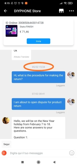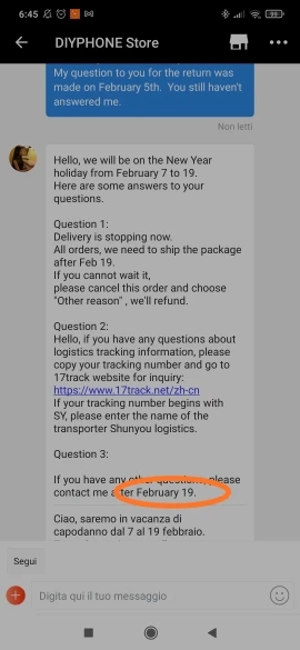 Я бы сказал, чтобы избежать абсолютно. Контакт до и после китайского Нового года. Никогда не отвечал. Очень разочаровывает поддержку клиентов. Каждый день spostavano poterli для связи. Магазин eviterei увидел, что отсутствие обратной связи я потерял право на возврат.