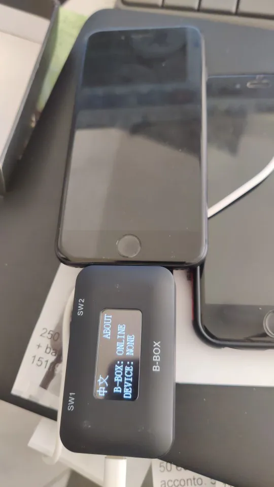 Доставка быстрая. Бокс работает только надо разбираться, ipad mini и 6 зацепился легко, 5s, 5 не поддерживаются пока. Провода в комплекте нету.