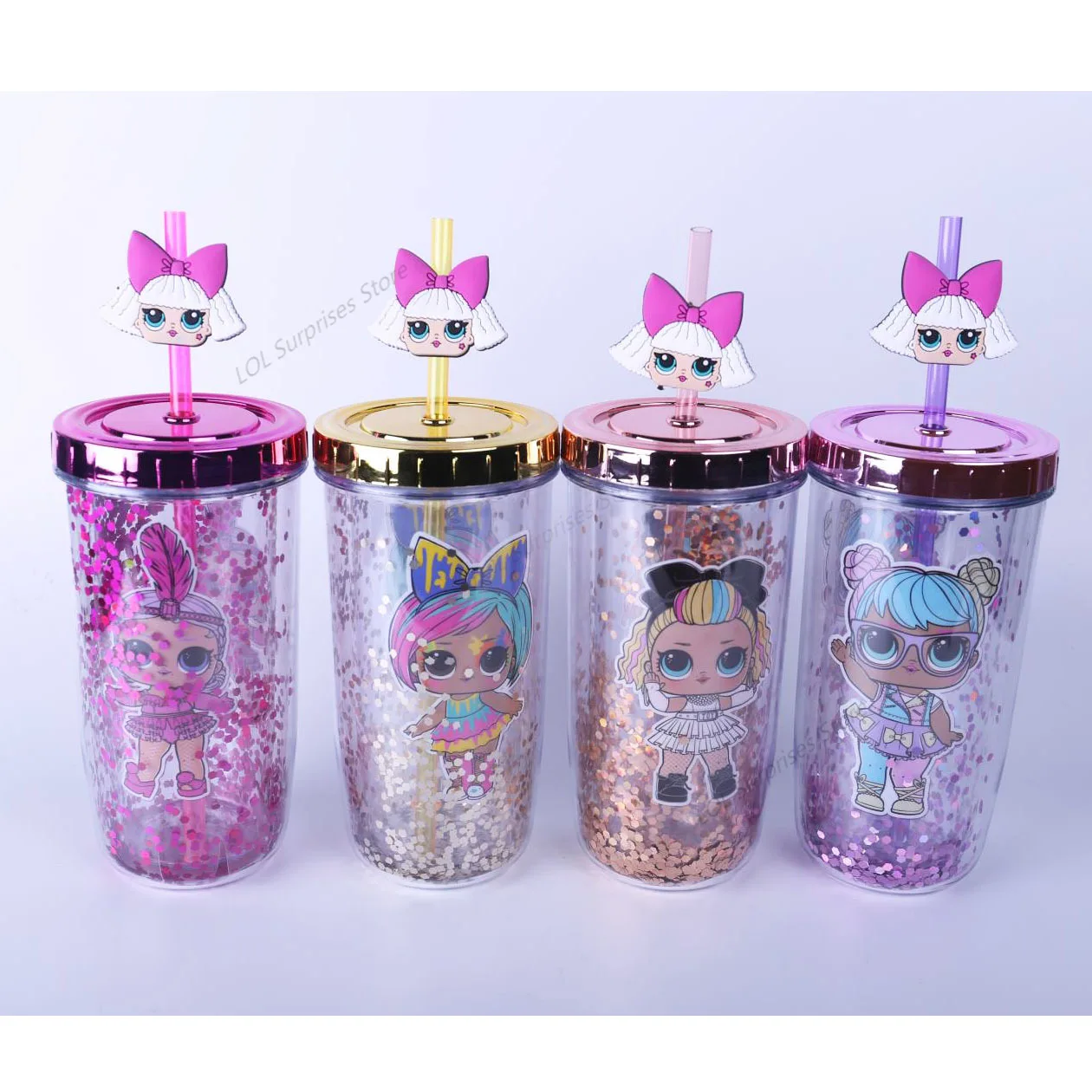 Куклы-сюрпризы LOL, милая бутылка для воды, термос, кружка, двойная пластиковая чашка для воды, подарки для девочек с героями мультфильмов, 300-400 мл