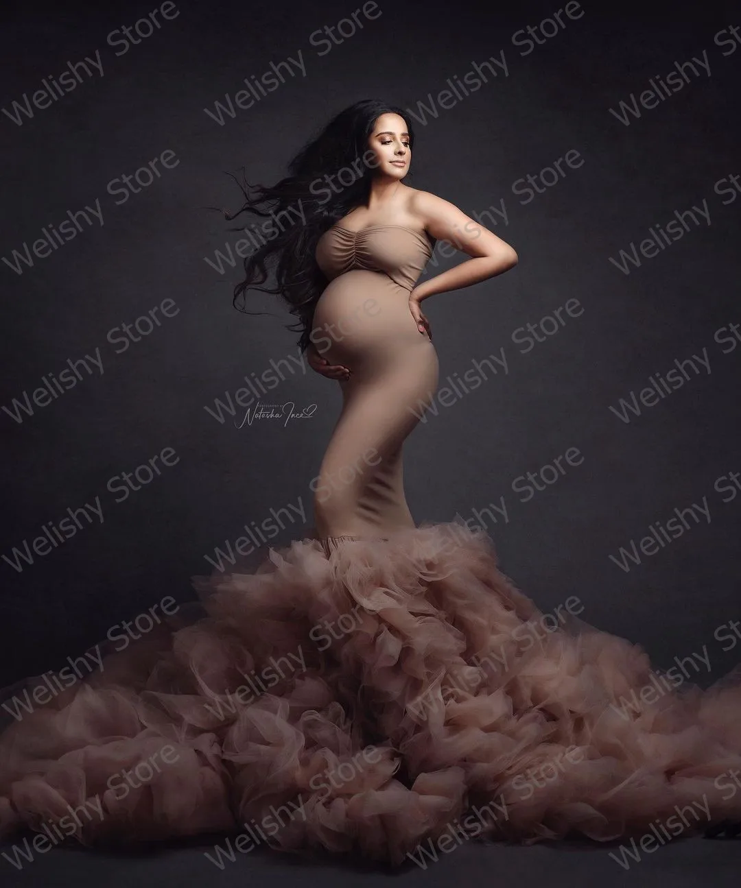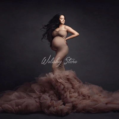 Элегантные эластичные женские платья из спандекса с юбкой годе для беременных женщин со шлейфом пышные гофрированные платья из тюля для фотографии
