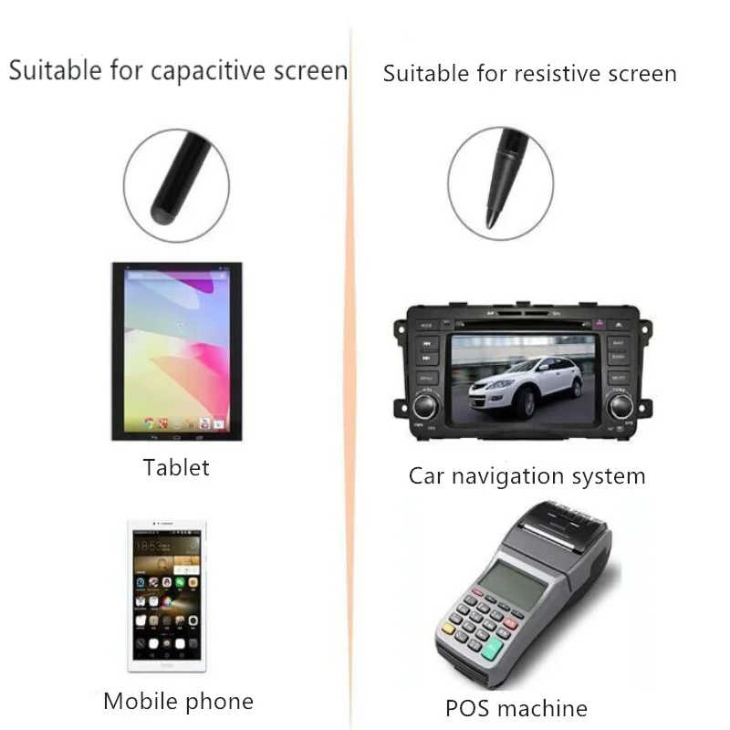 Размер: диаметр: 0,7 см Длина: 12 см вес = 3,9 г характеристики продукта: силиконовый наконечник ручки для сенсорного экрана (Толстая головка для емкостного экрана) один конец-жесткий пластик (заостренный наконечник для резистивного экрана) сфера применения: подходит для мобильных телефонов, игровых консолей, планшетов, POS-машин, Медицинские устройства и другие устройства с сенсорным экраном, совместимы со всеми текущими емкостными экранами и резистивными экранами.