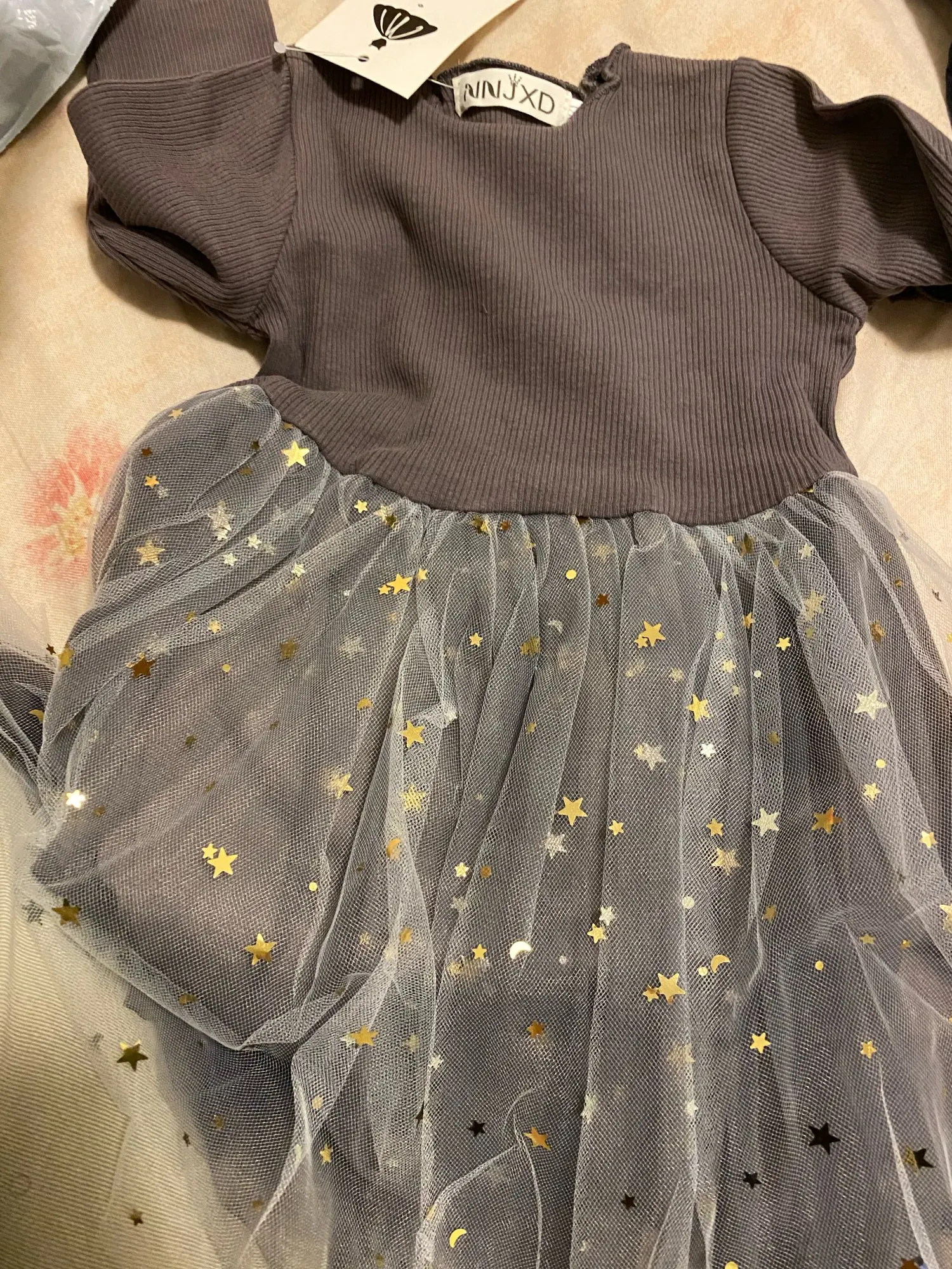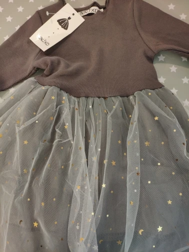 Платье очень красивое, очень хорошее качество изготовления, подкладка нижней части из хлопка, звезды склеены и не окрашены в тюль. Платье, как на картинке. Быстрая отправка. Рекомендуем покупать