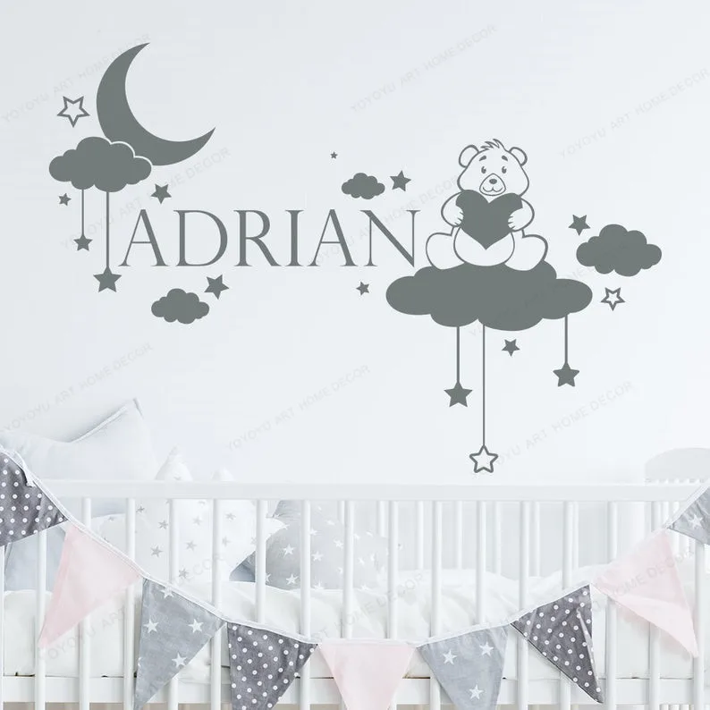 Настенный стикер с изображением мишки тедди, пользовательское имя, наклейка на стену в детскую облачную звезду, украшение для девочек, декор для стен комнаты JH640