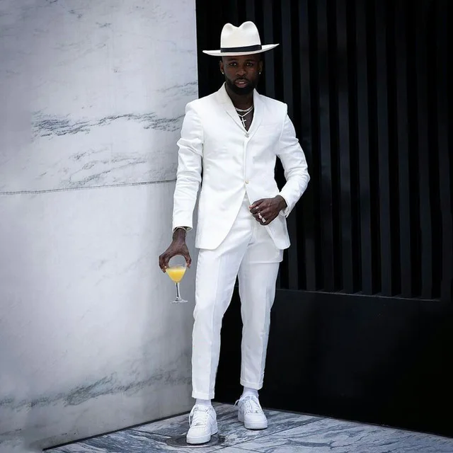 Повседневный стильный белый костюм для мужчин, деловой мужской пиджак и брюки, комплект из 2 предметов, модный приталенный мужской костюм, мужской костюм для свадьбы