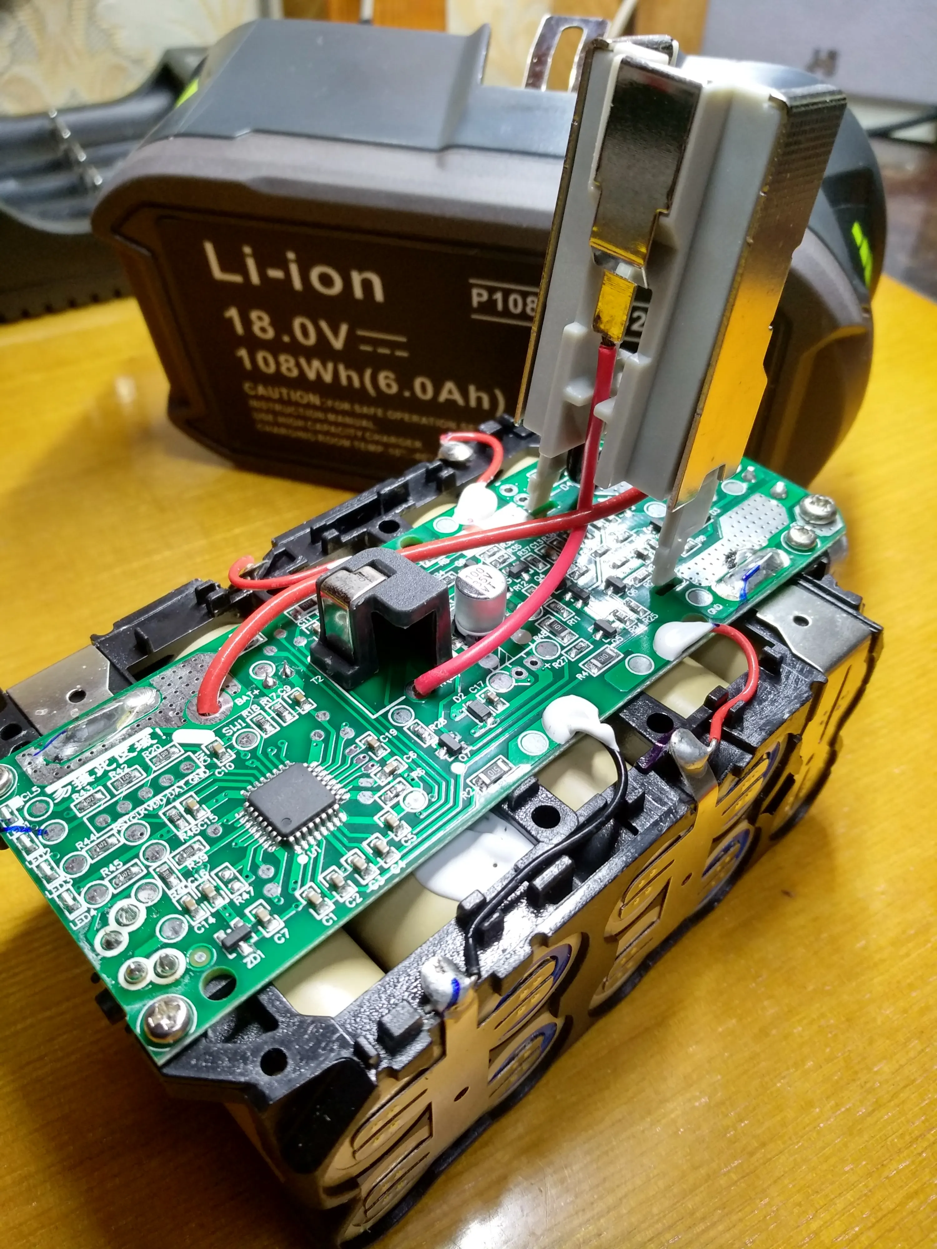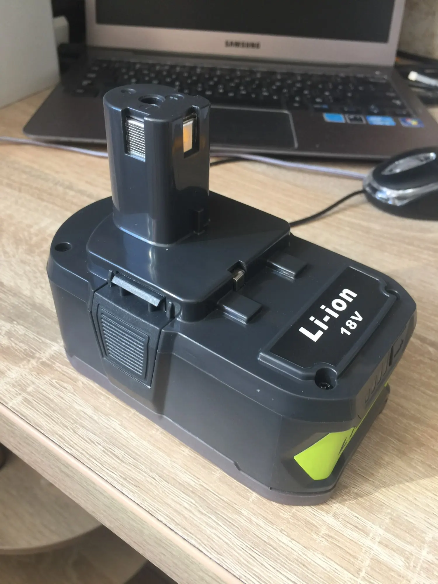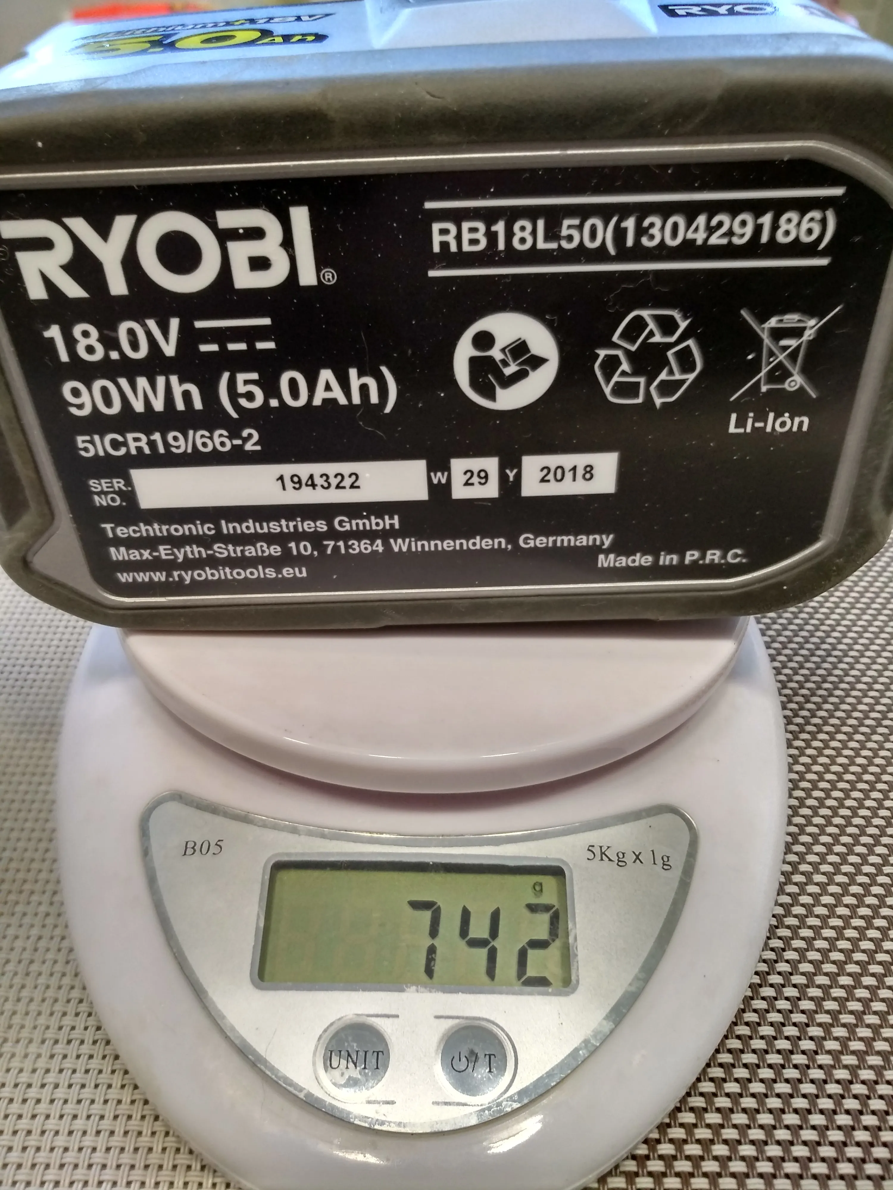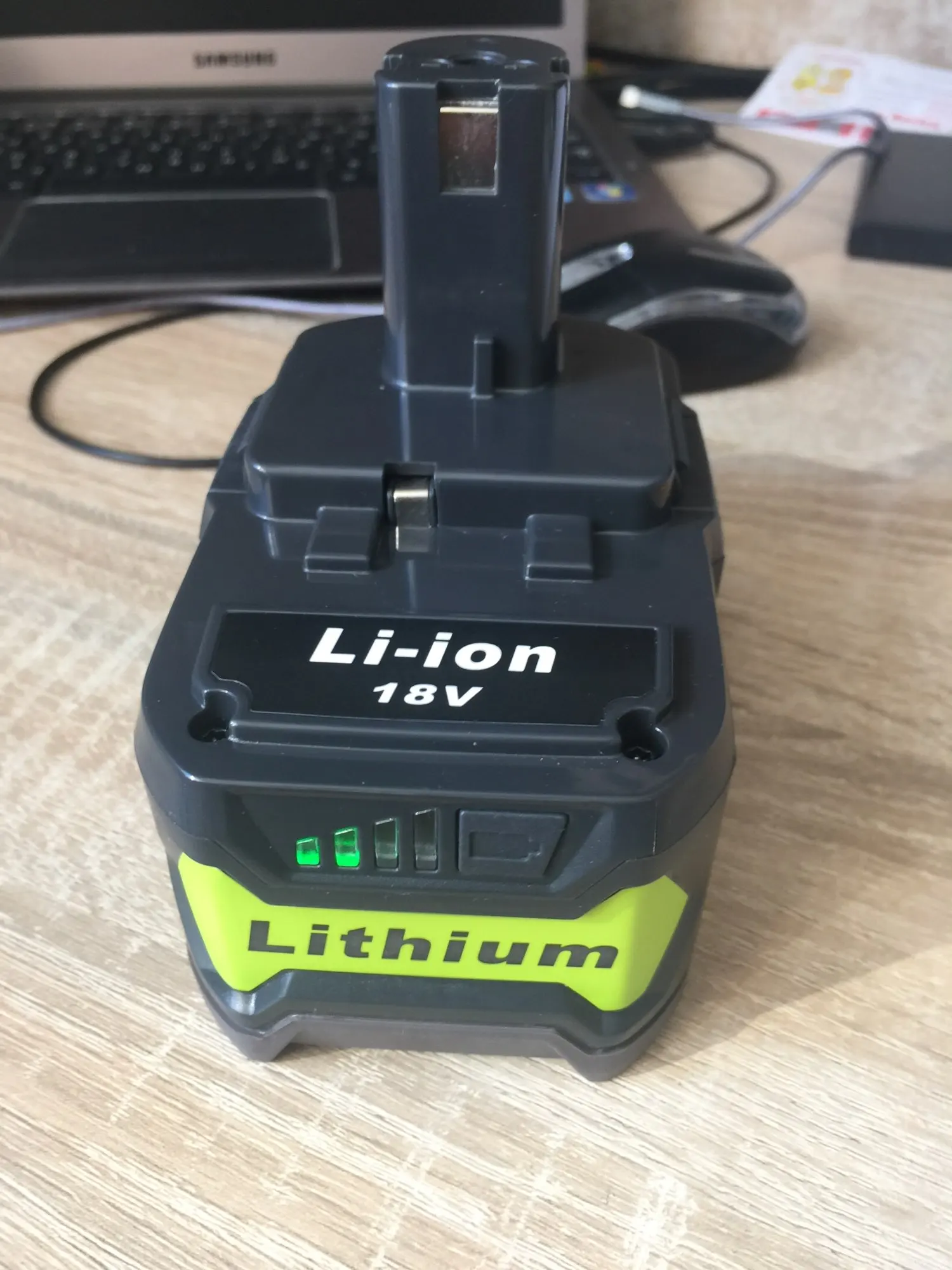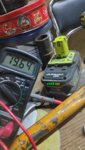 Качественный корпус, аккуратная пайка компонентов. Пришли заряженными на 80%. Внутри ячейки без надписей, модель и емкость не определить. В оригинальной зарядке Ryobi заряжаются.