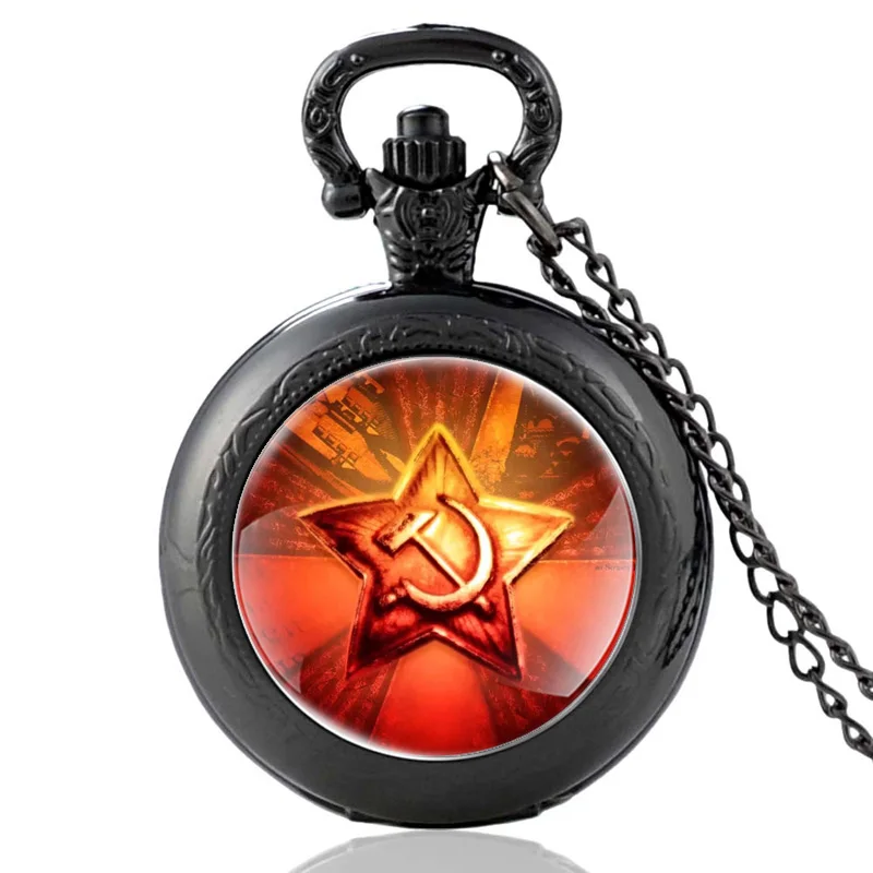 Спортивные часы с серповидным молотком, дизайн коммунизма, черные винтажные кварцевые карманные часы для мужчин и женщин, подвеска, ожерелье, часы