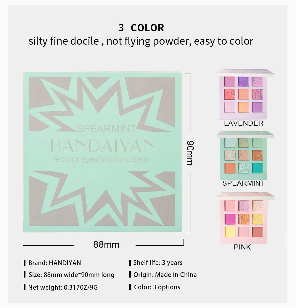 Палитра теней для век HANDAIYAN, 9 цветов, мятно-сиреневые тени для...