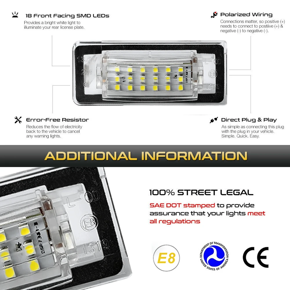 Светодиодные светильник пы для номерного знака Audi TT 8N MK1 Audi Roadster 8N9 Audi TT Coupe 8N3, 2 шт., автомобильные аксессуары