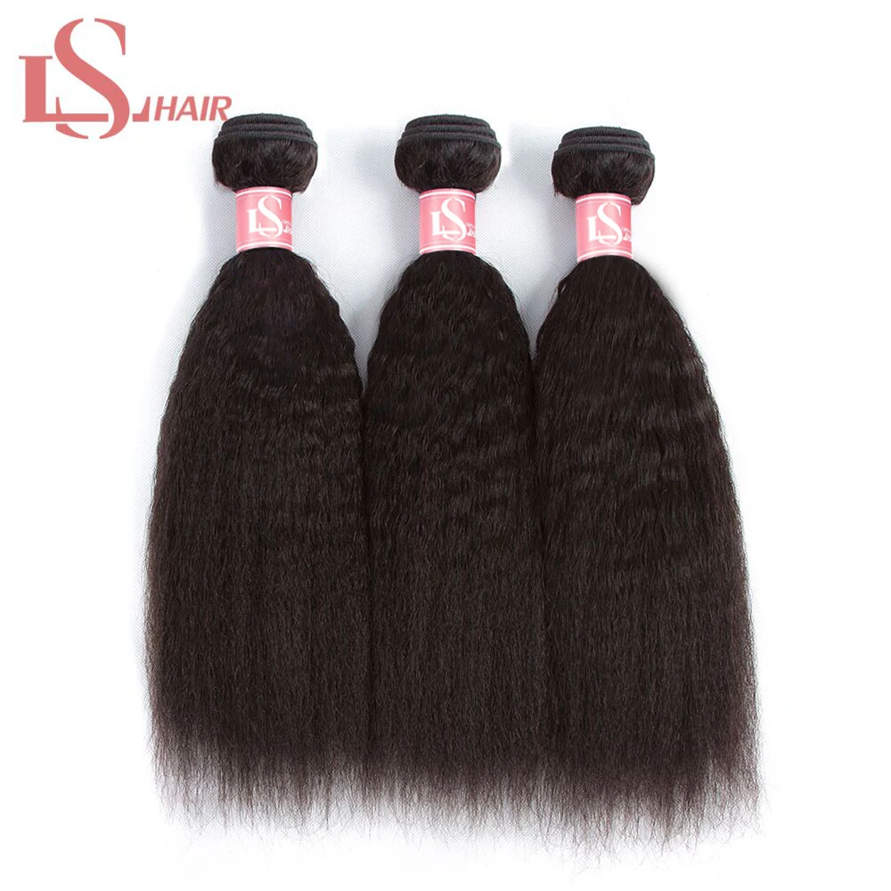 LS 28 30 32 дюйма бразильские курчавые прямые пучки с застежкой Remy человеческие волосы 3 пряди с кружевной застежкой человеческие волосы для наращивания